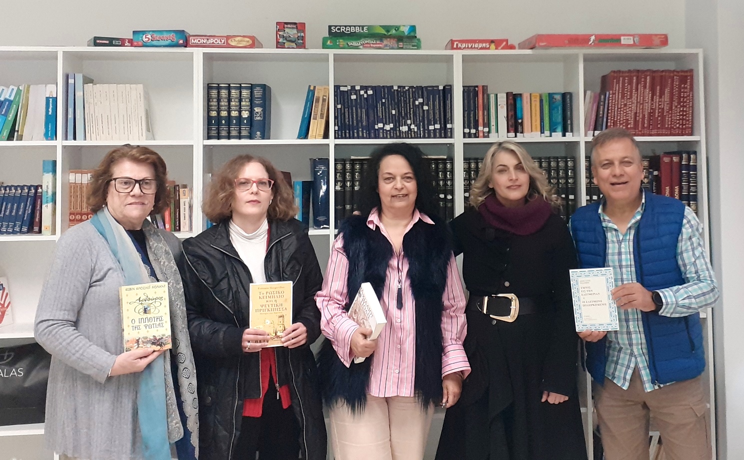 Τα βιβλία παρέλαβαν η διευθύντρια και οι εκπαιδευτικοί του σχολείου Ζωή Μουχτή (φιλόλογος, υπεύθυνη σχολικής ζωής) και Ρίτα Βούλγαρη (φιλόλογος), ενώ τα βιβλία παρέδωσαν η αντιπρόεδρος Ευδοκία Ποιμενίδου και ο πρόεδρος του ΠΟΚΕΛ, Αργύρης Γιουρούκης.
