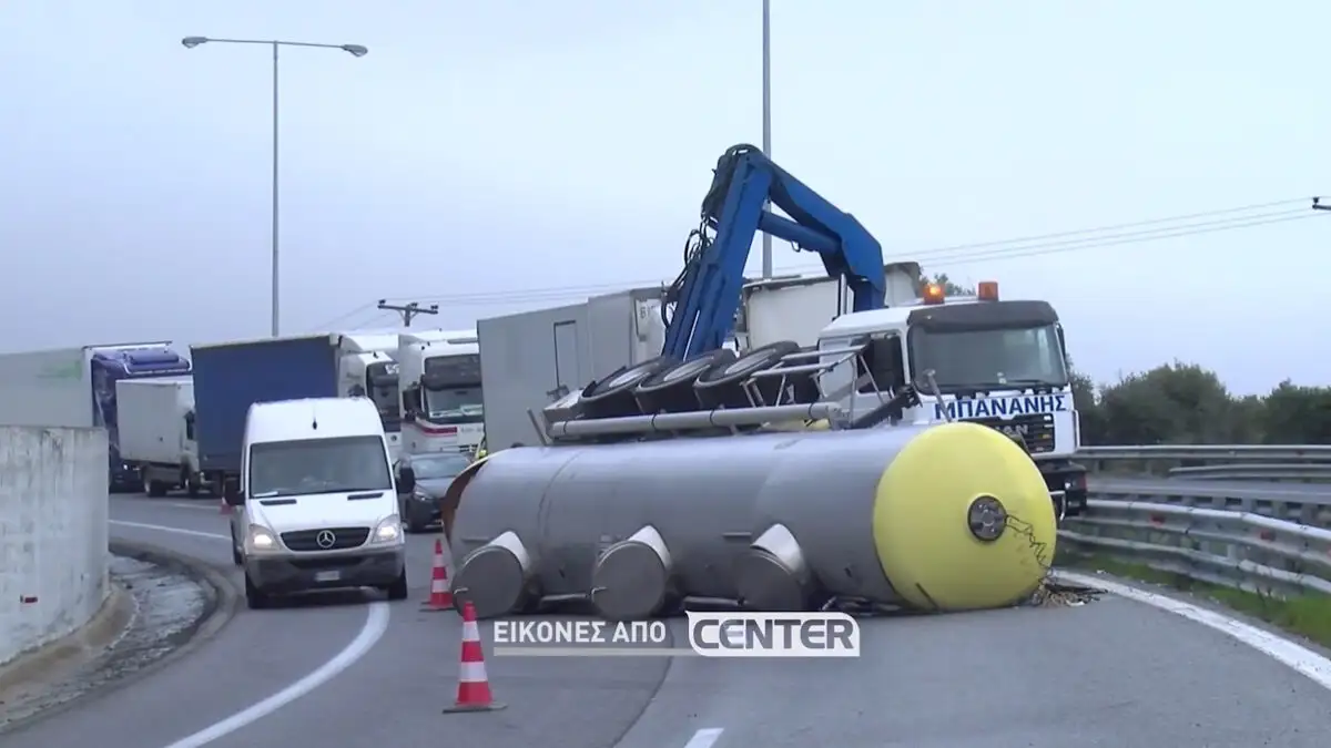 Το τροχαίο σημειώθηκε το μεσημέρι, όταν το βυτιοφόρο εξετράπη της πορείας του και έγειρε στα πλάγια στο οδόστρωμα της Εγνατίας οδού στην Καβάλα, στο ρεύμα προς Θεσσαλονίκη.