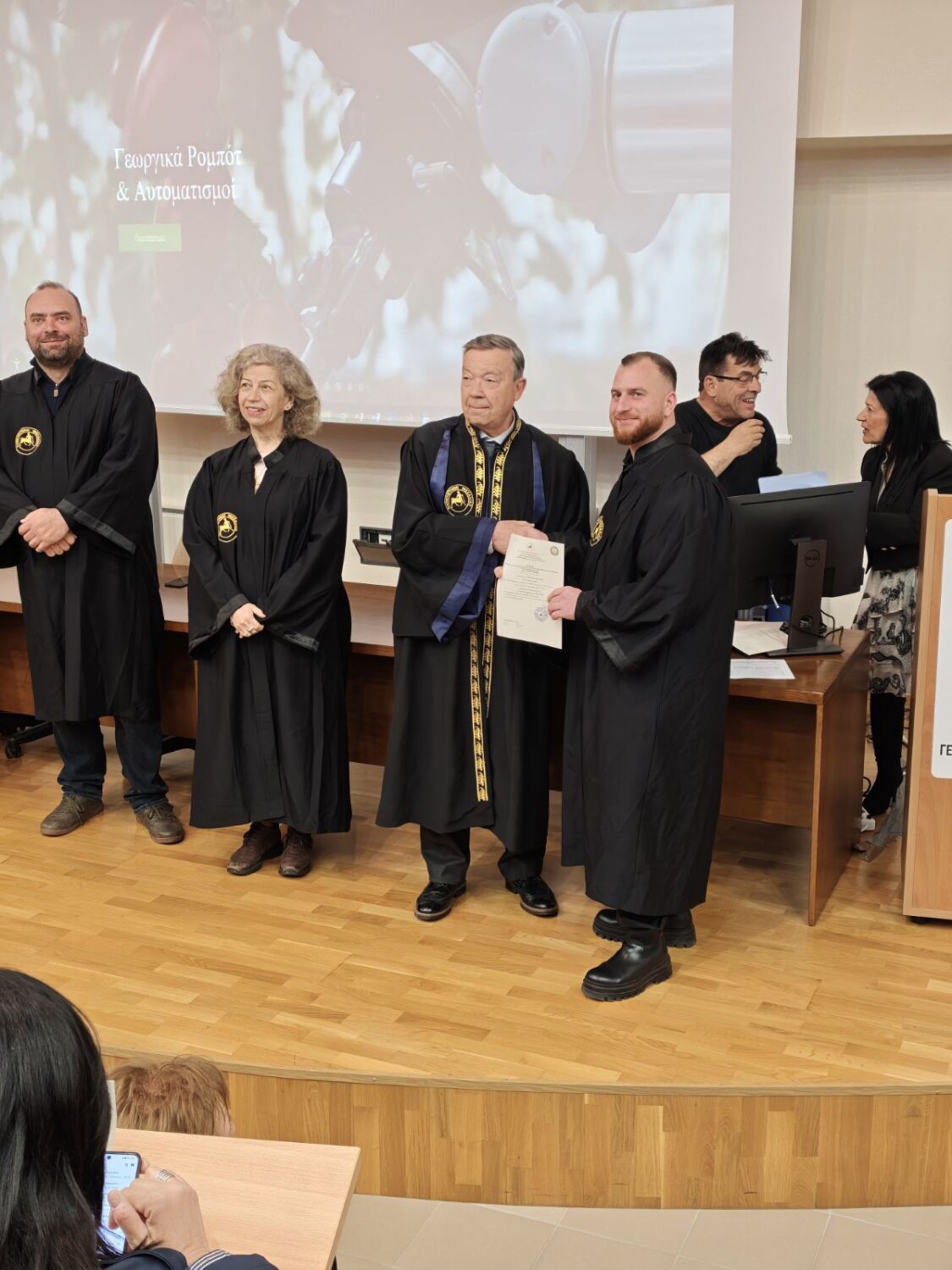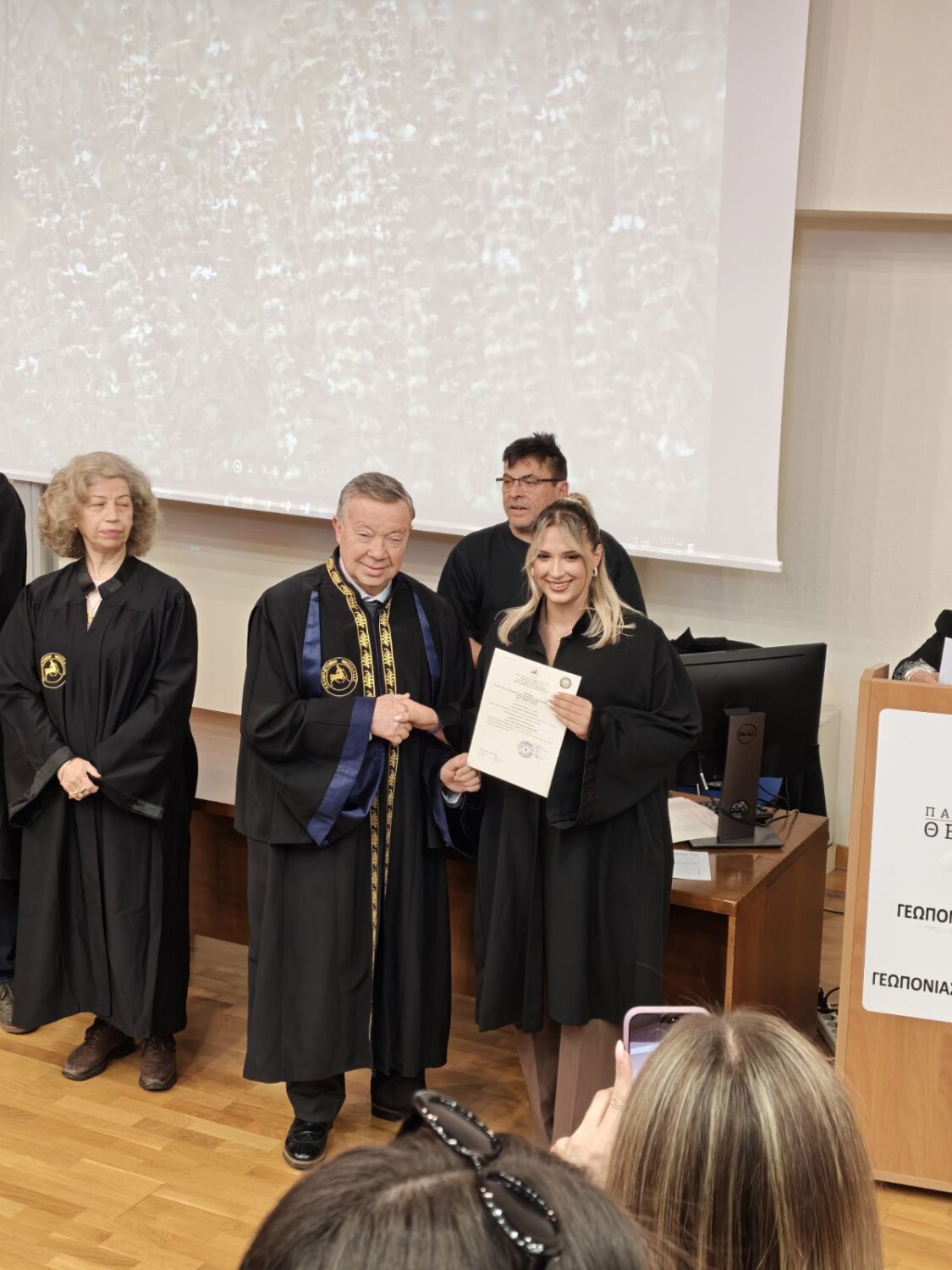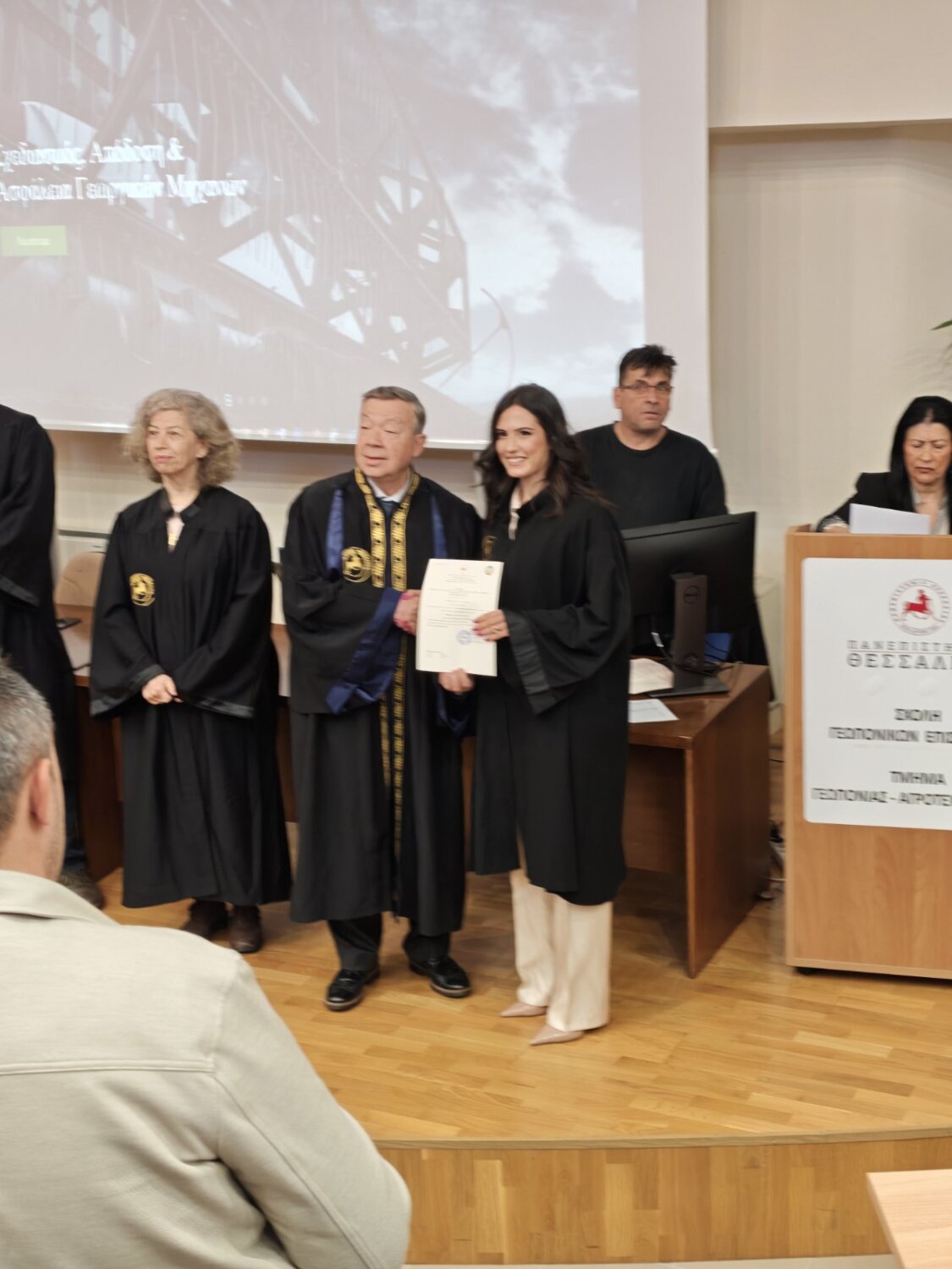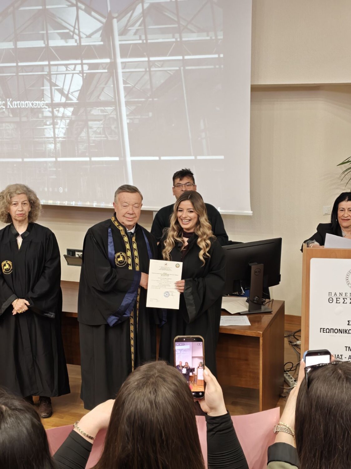 Η εκδήλωση φιλοξενήθηκε στο μεγάλο αμφιθέατρο ”Θεόφραστος” του Τμήματος και πλαισιώθηκε από την παρουσία ακαδημαϊκών, συγγενών και φίλων, οι οποίοι χειροκρότησαν τη δικαίωση μιας πολυετούς προσπάθειας.