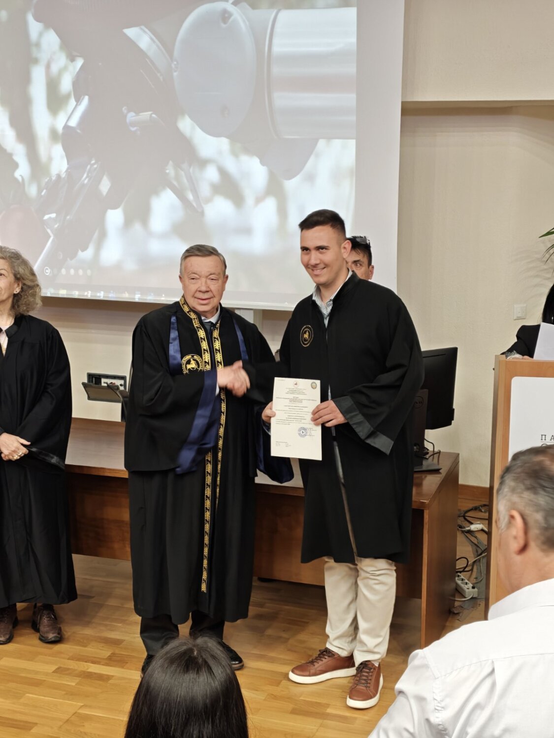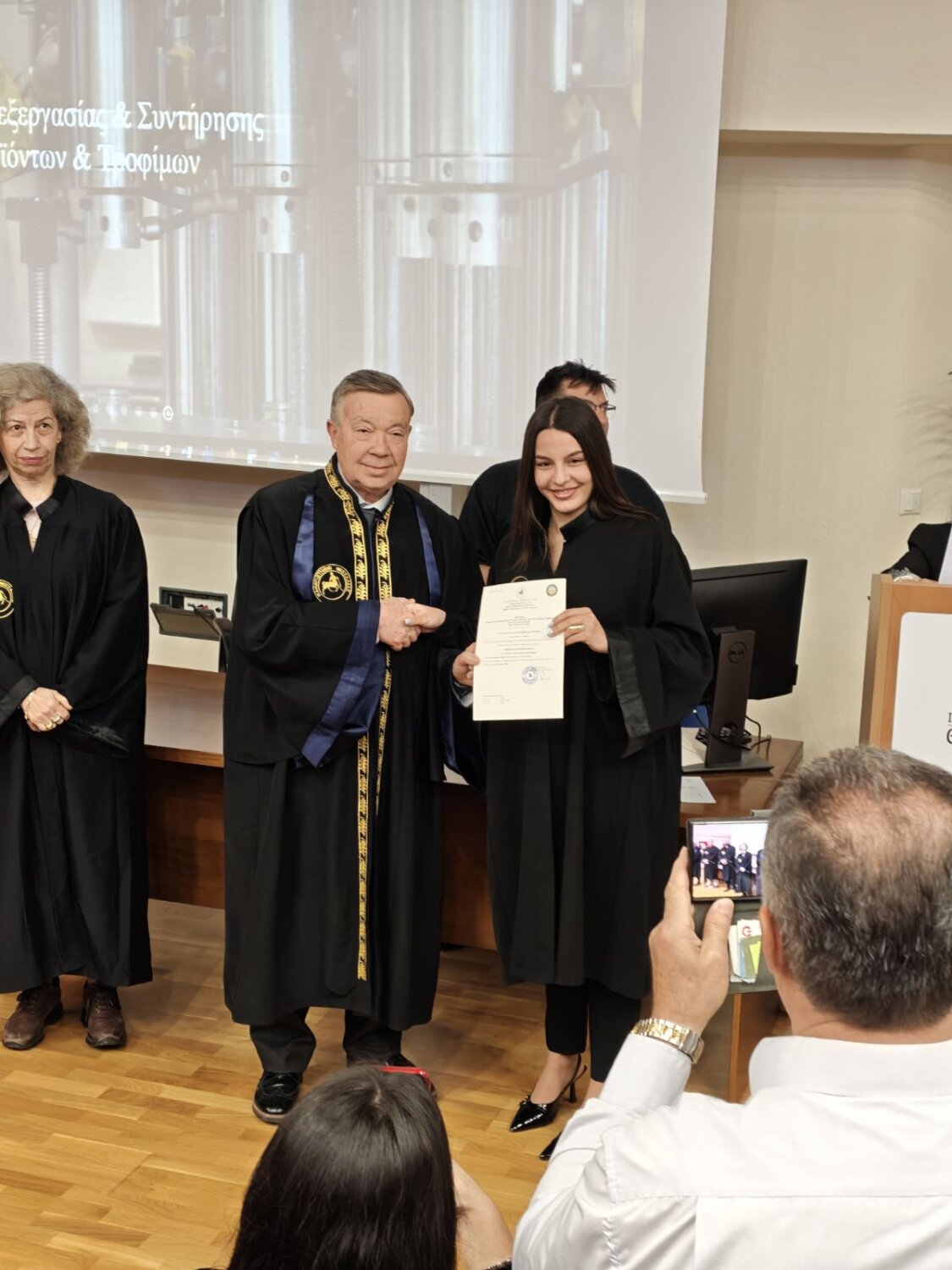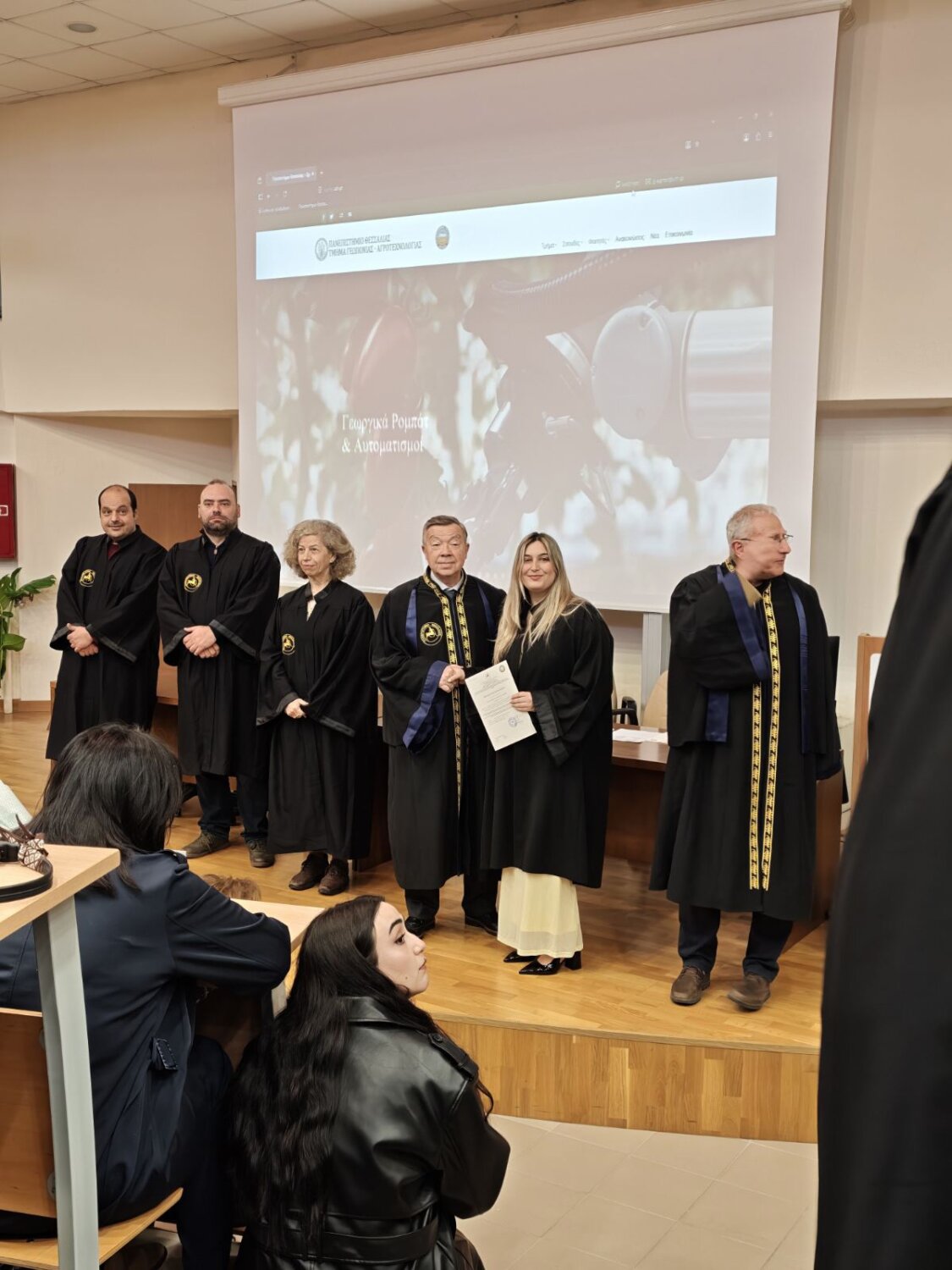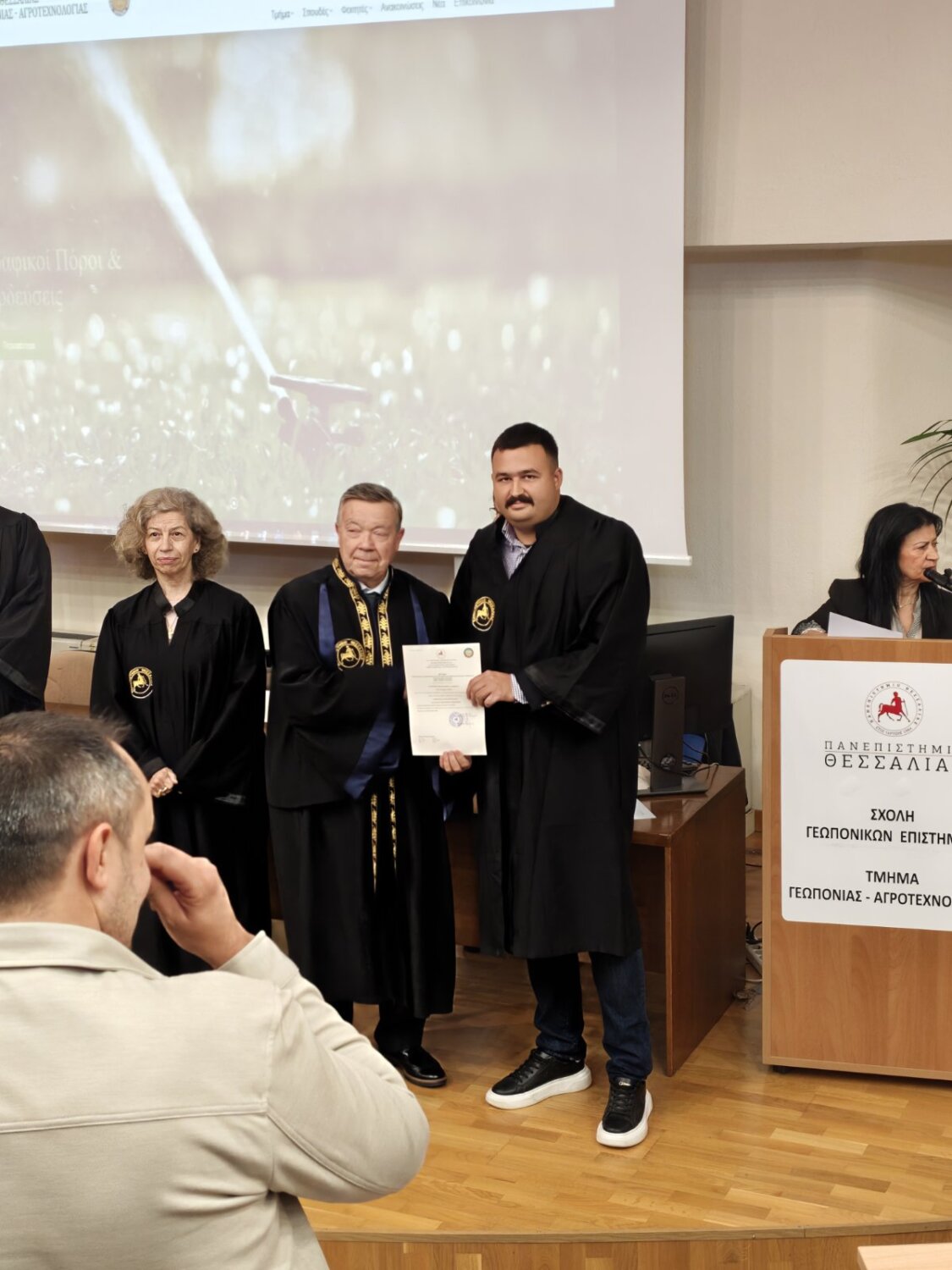 Η εκδήλωση φιλοξενήθηκε στο μεγάλο αμφιθέατρο ”Θεόφραστος” του Τμήματος και πλαισιώθηκε από την παρουσία ακαδημαϊκών, συγγενών και φίλων, οι οποίοι χειροκρότησαν τη δικαίωση μιας πολυετούς προσπάθειας.