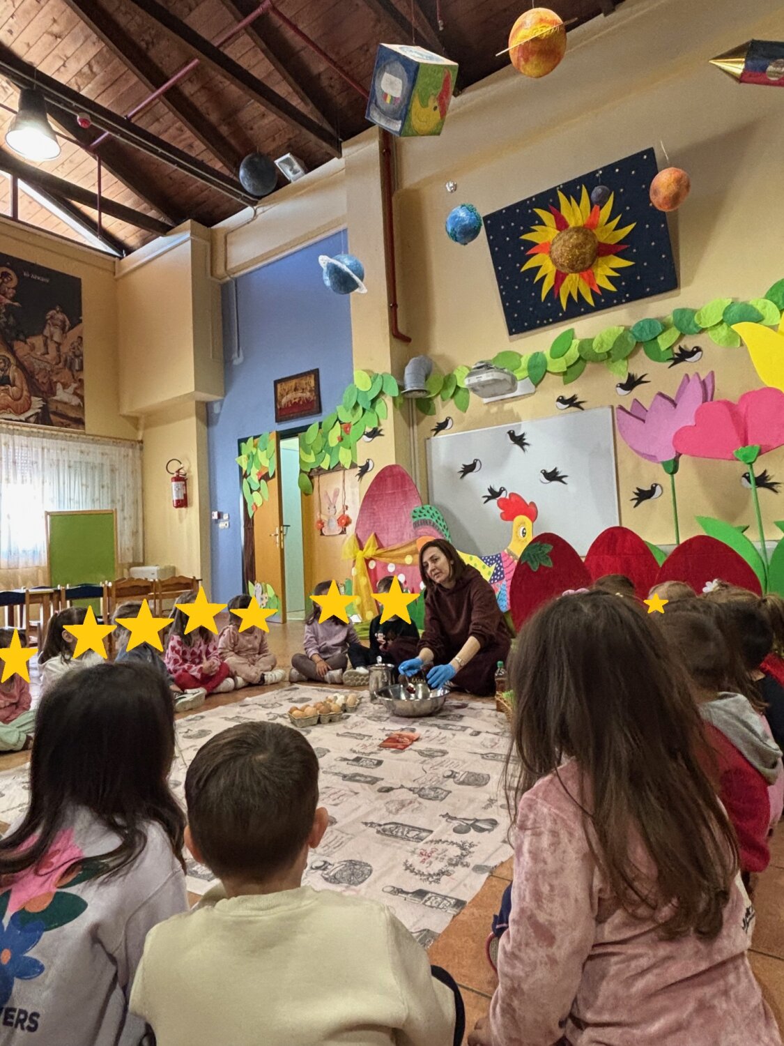 “Πλάθοντας Λαζαράκια” Τα παιδιά συμμετείχαν ενεργά στο παραδοσιακό έθιμο, ζυμώνοντας τα δικά τους «Λαζαράκια». Το παιχνίδι με το ζυμάρι αποτελεί μια εξαιρετική άσκηση λεπτής κινητικότητας και οπτικοκινητικού συντονισμού. Οι μυρωδιές από τα μπαχαρικά και η αφή του ζυμαριού προσφέρουν πλούσια ερεθίσματα που βοηθούν στην αισθητηριακή ολοκλήρωση , ενώ ταυτόχρονα συνδέουν τα παιδιά βιωματικά με την πολιτισμική μας κληρονομιά.