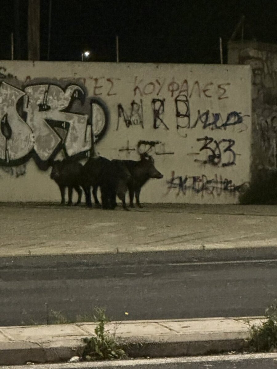 Τέσσερα αγριογούρουνα έκαναν την εμφάνιση τους τα ξημερώματα της Παρασκευής (3/4) στο ύψος της οδού Κύπρου, στον Βόλο.