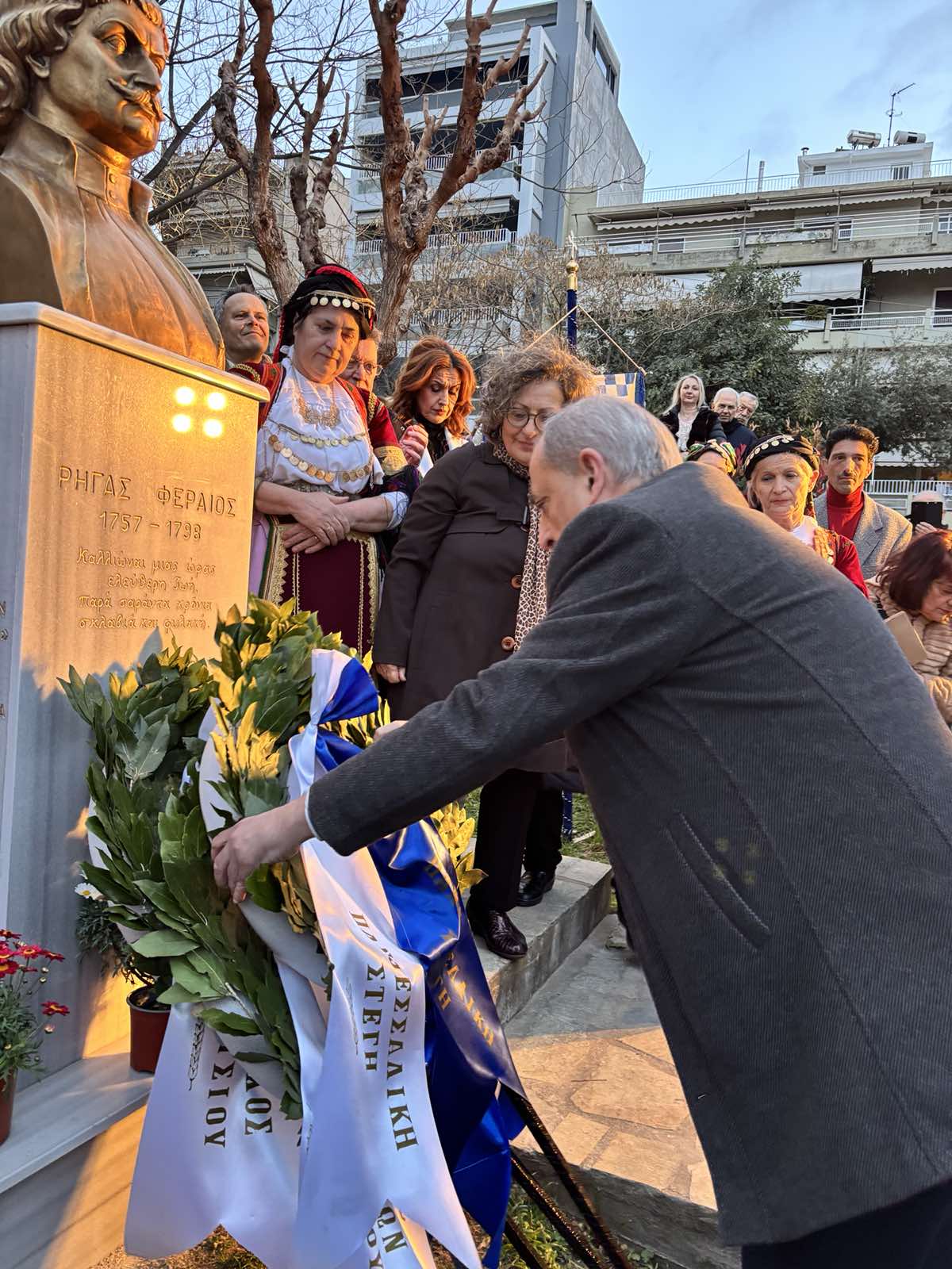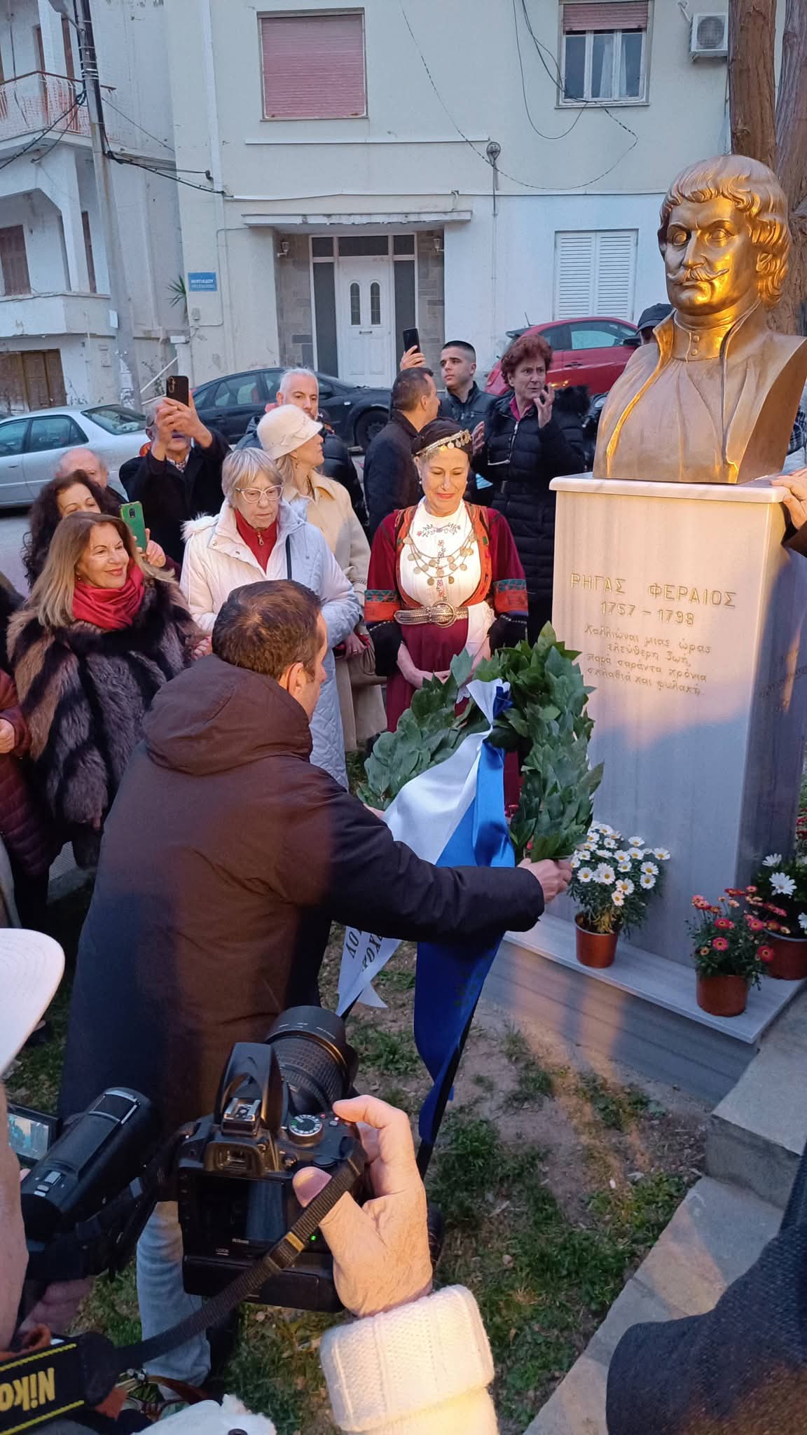 « Ο Ρήγας, ο επαναστάτης-μεταρρυθμιστής που οραματίστηκε την σύγχρονη Ελληνική Δημοκρατία, είναι γνωστός ως Φεραίος, λόγω της ταύτισης του έργου του «Επιπεδογραφία Φεράς, λεγομένης νυν Βελεστίνος».