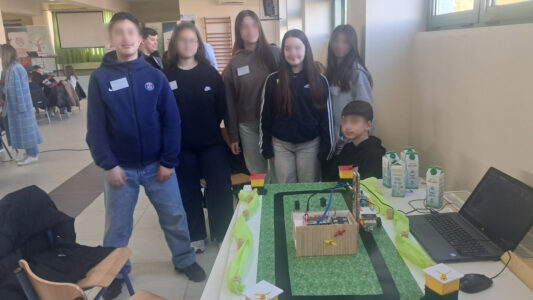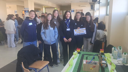 «Η ομάδα μας αποτελείται από 6 μαθητές/τριες της Β΄Γυμνασίου και προσήλθε στον διαγωνισμό με το έργο «Bee-bot in Action!» στην Open Κατηγορία Γυμνασίου-Λυκείου-ΕΠΑΛ.