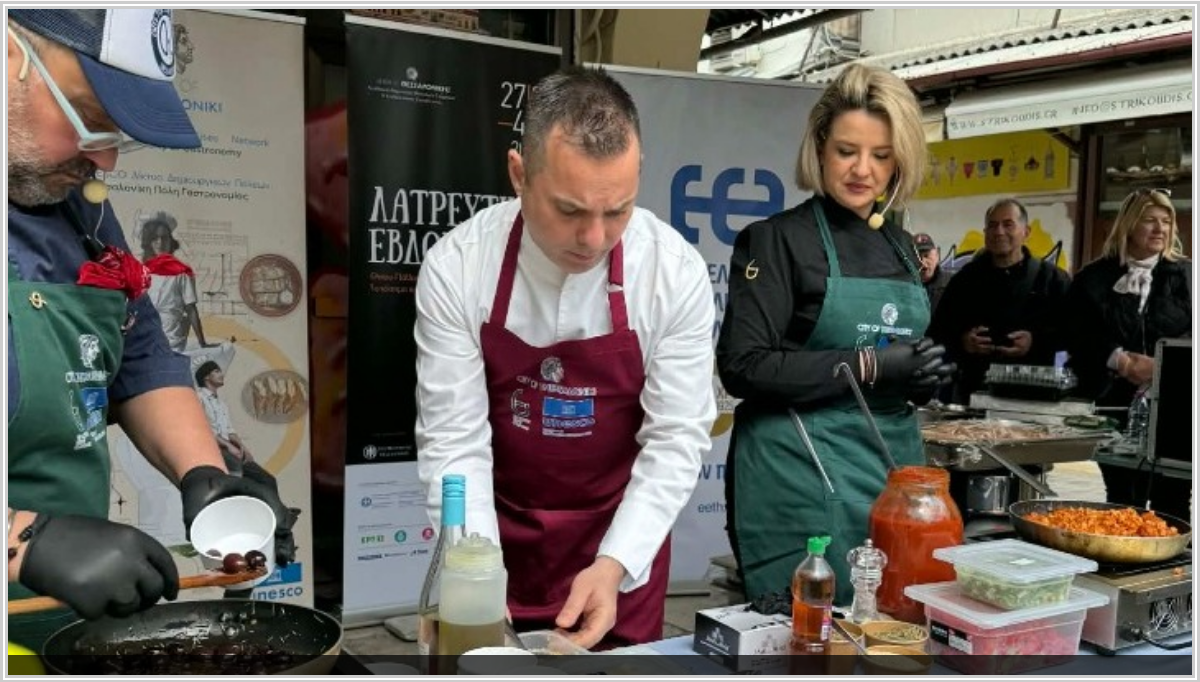 Τρεις αναγνωρισμένοι σεφ της Θεσσαλονίκης έπιασαν τα τηγάνια και τις κουτάλες και μετέτρεψαν την παραδοσιακή αγορά της πόλης, στην οδό Βλάλη, στο Καπάνι, σε μία υπαίθρια «ζωντανή» κουζίνα. Μαγείρεψαν βυζαντινές ελιές, τηγανιά μανιταριών, κεφτεδάκια σουπιάς με κοφτό μακαρονάκι και παραδοσιακό σάμαλι σε μια προσπάθεια ανάδειξης της τοπικής ταυτότητας, ενίσχυσης της αγοράς και διεθνούς προβολής της Θεσσαλονίκης ως γαστρονομικού προορισμού.