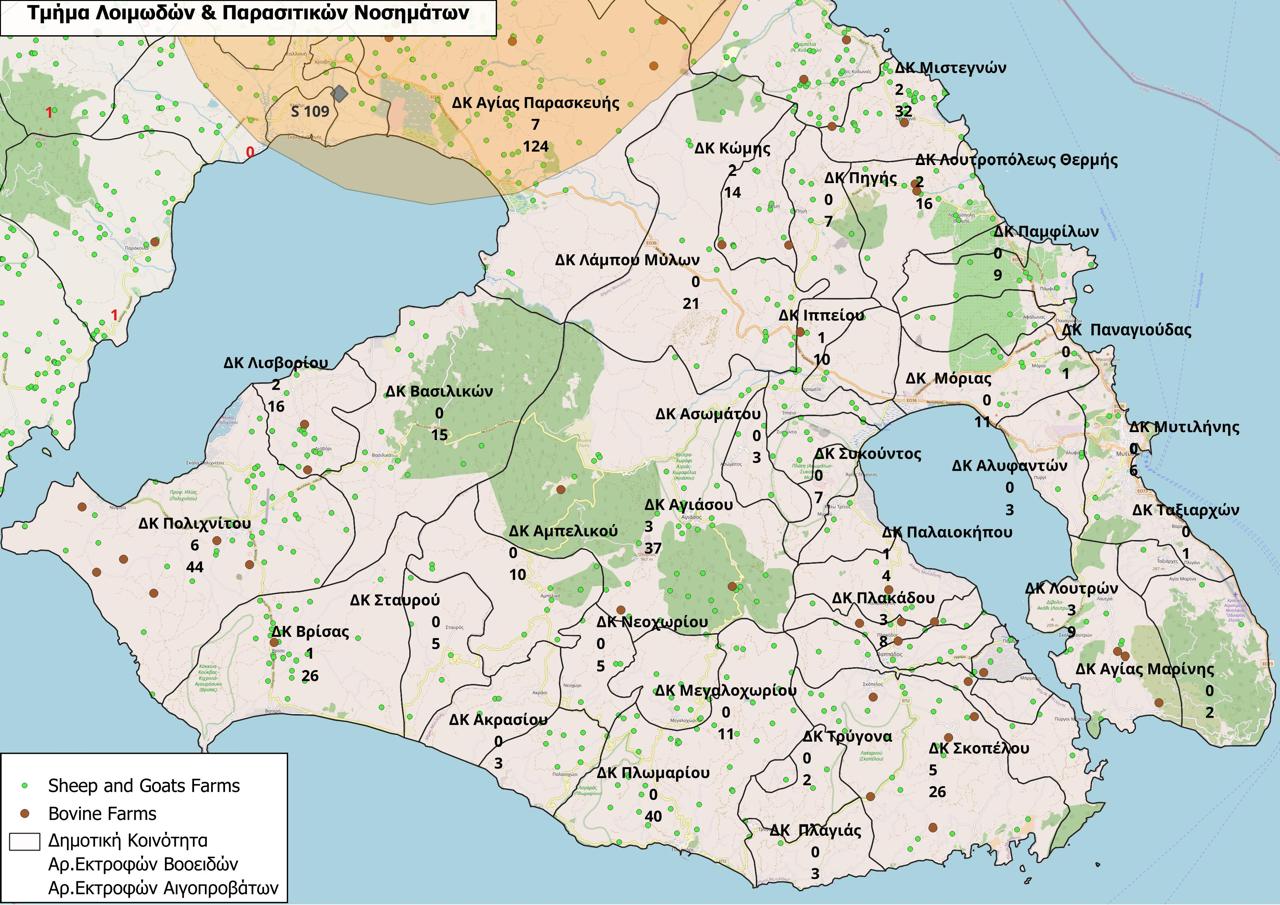 Ειδικότερα, τα νέα περιστατικά αφορούν εκτροφές αιγοπροβάτων στην περιοχή Νάπη κοντά στην Πελόπη της Λέσβου.