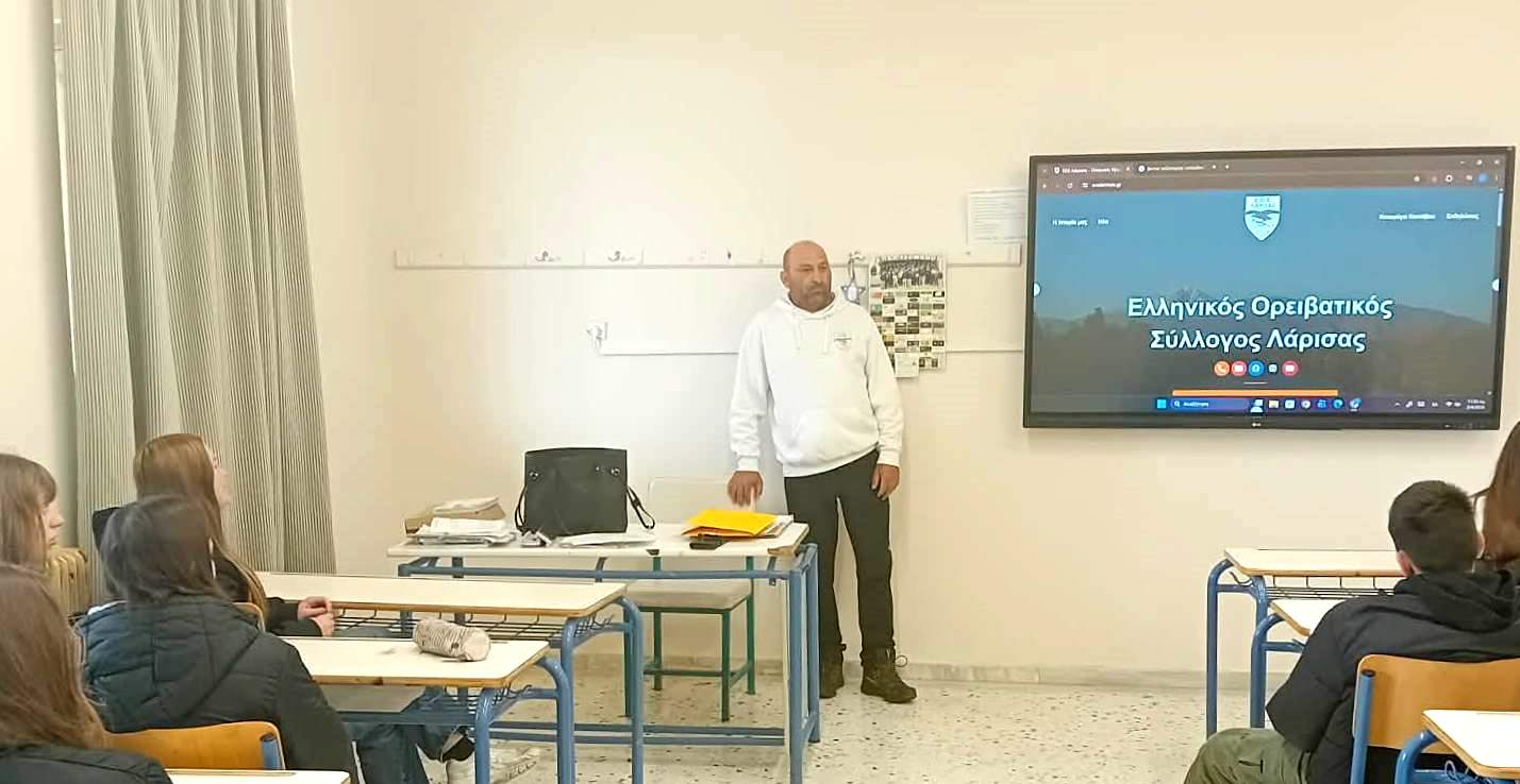 Με αφορμή το περιβαλλοντικό πρόγραμμα με τίτλο: “Πεζοπορώντας στον Κίσαβο με οδηγό τη Φύση”, μαθητές και μαθήτριες του ΕΠΑΛ Τυρνάβου ενημερώθηκαν από τον Πικρό Βασίλειο, εκπρόσωπο του Ελληνικού Ορειβατικού Συλλόγου Λάρισας και μέλος της Τεχνικής Επιτροπής Ορειβασίας του ΕΟΣ Λάρισας, για μια ξεχωριστή δραστηριότητα που συνδυάζει τη φύση, την άσκηση και την περιπέτεια: την ορειβασία, με αφορμή το όμορφο βουνό του Κισσάβου, που βρίσκεται στη Θεσσαλία.