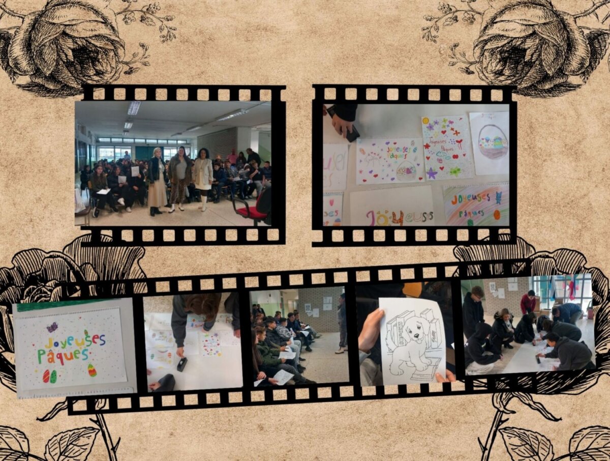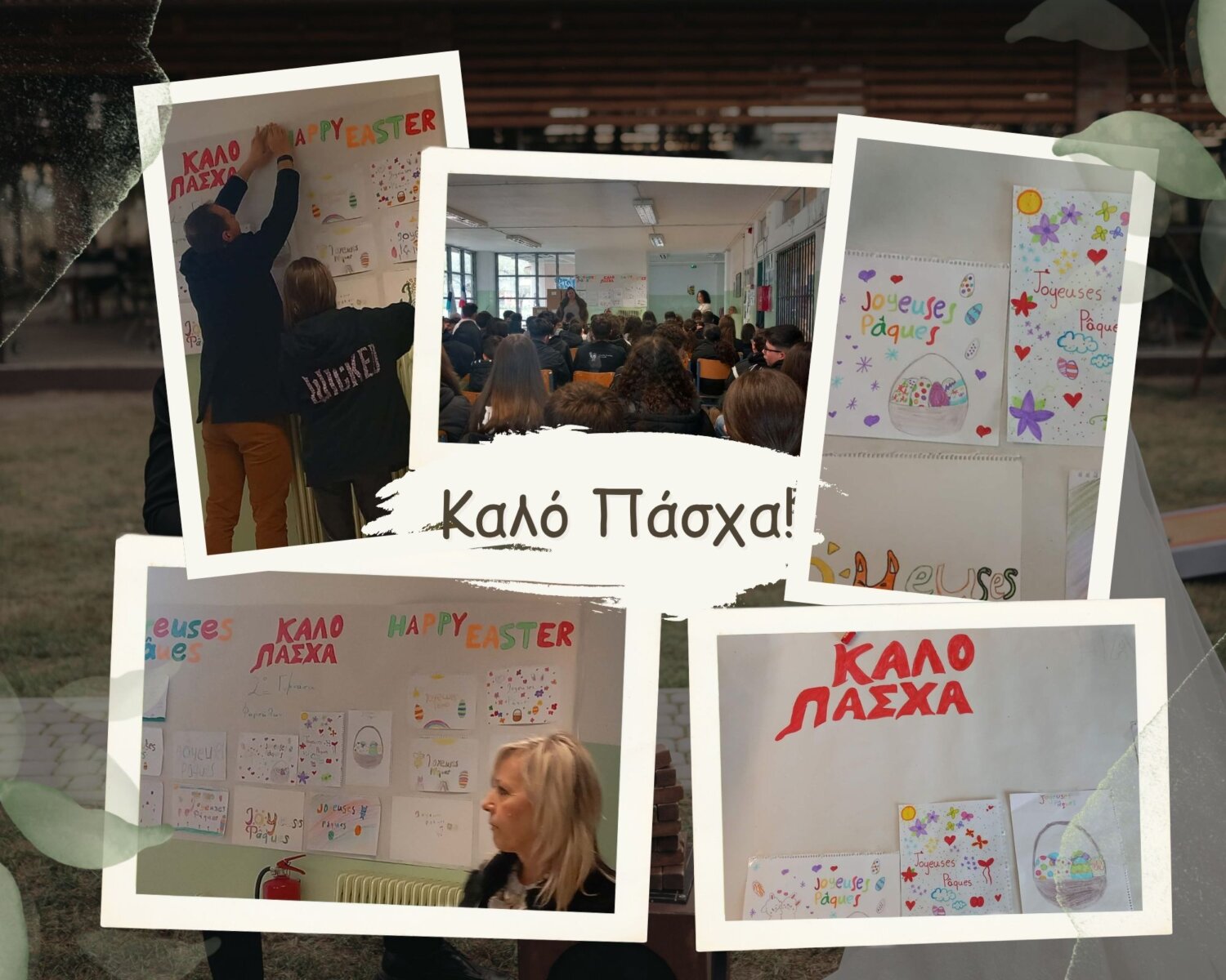 Στο τέλος, με πρωτοβουλία του Συλλόγου Διδασκόντων μοιράστηκαν σκίτσα μικρών ζώων για ζωγραφική συμπληρώνοντας την εικαστική δημιουργία – πανό του Πάσχα που φιλοτέχνισαν οι μαθητές και οι μαθήτριες της Α΄ Τάξης Γυμνασίου με την καθοδήγηση των καθηγητών/-τριών τους και συντονίστρια την κ. Τζαλαμούρα Μαρίνα καθηγήτρια της Αγγλικής Γλώσσας.