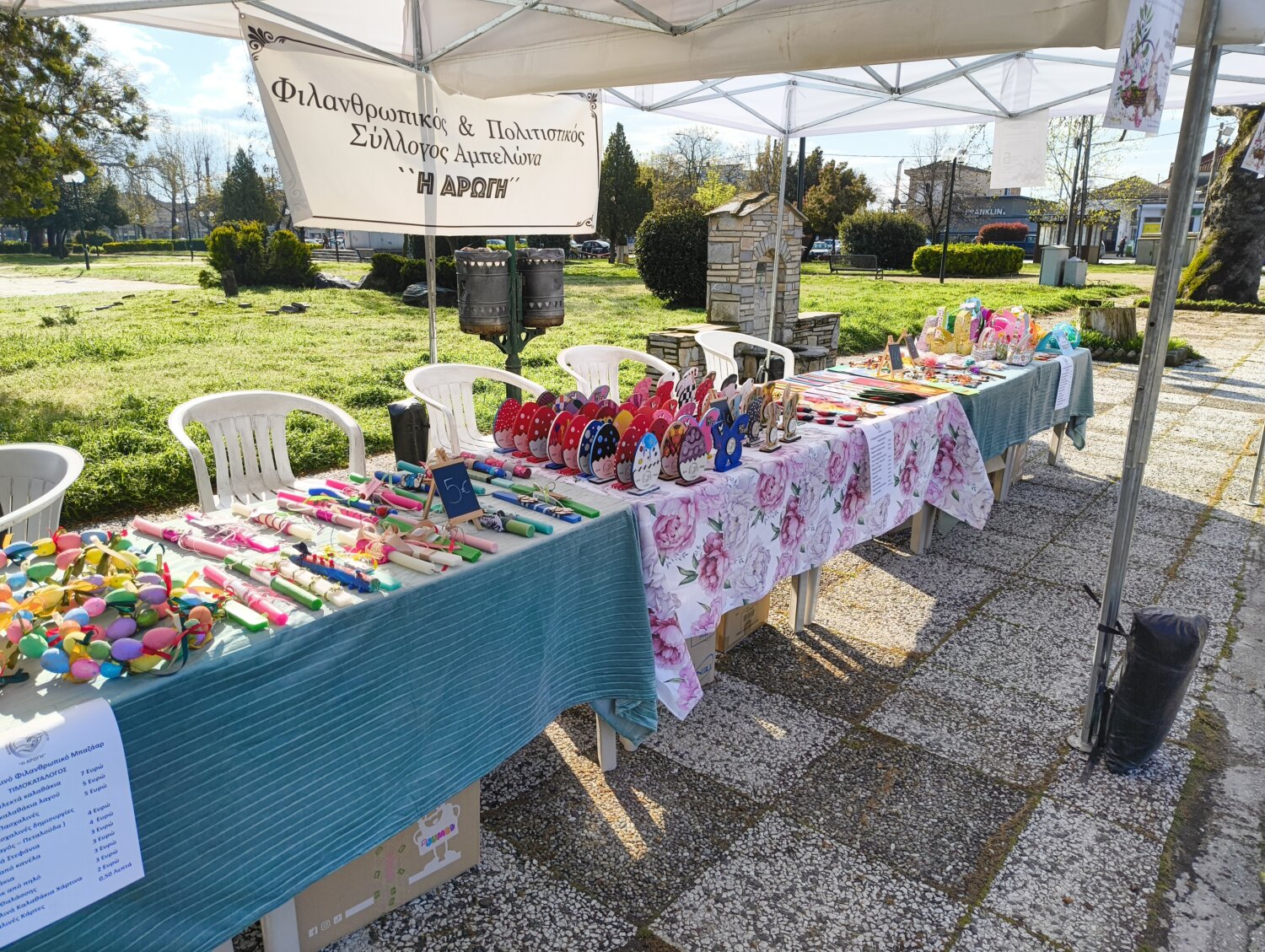 Μεγάλη επιτυχία σημείωσε το 3ο Πασχαλινό Φιλανθρωπικό Μπαζάρ που διοργάνωσε ο Φιλανθρωπικός και Πολιτιστικός Σύλλογος «Η ΑΡΩΓΗ» Αμπελώνα την Κυριακή 5 Απριλίου 2026 στην κεντρική πλατεία του Αμπελώνα σε συνεργασία με τα 1ο – 2ο – 3ο 4ο Νηπιαγωγεία, 1ο – 2ο – 3ο Δημοτικά Σχολεία ,το Γυμνάσιο Αμπελώνα και το ΚΑΔΠ «ΕΥ ΖΕΙΝ» . Μια δράση Εθελοντισμού και Αλληλεγγύης προς τον συνάνθρωπο την οποία αγκάλιασαν και στήριξαν οι Εκπαιδευτικοί , οι μαθητές – μαθήτριες των σχολείων του Αμπελώνα που με πολύ κέφι και μεράκι φιλοτέχνησαν υπέροχα Πασχαλιάτικα δώρα.