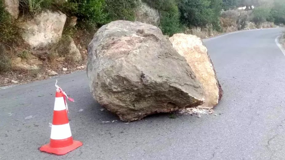 Η κατολίσθηση σημειώθηκε χθες το πρωί γύρω στις 10:30 στο ύψος του πέμπτου χιλιομέτρου, όταν ένας μεγάλος βράχος κατέπεσε στο οδόστρωμα διακόπτοντας πλήρως την κυκλοφορία και στα δύο ρεύματα.