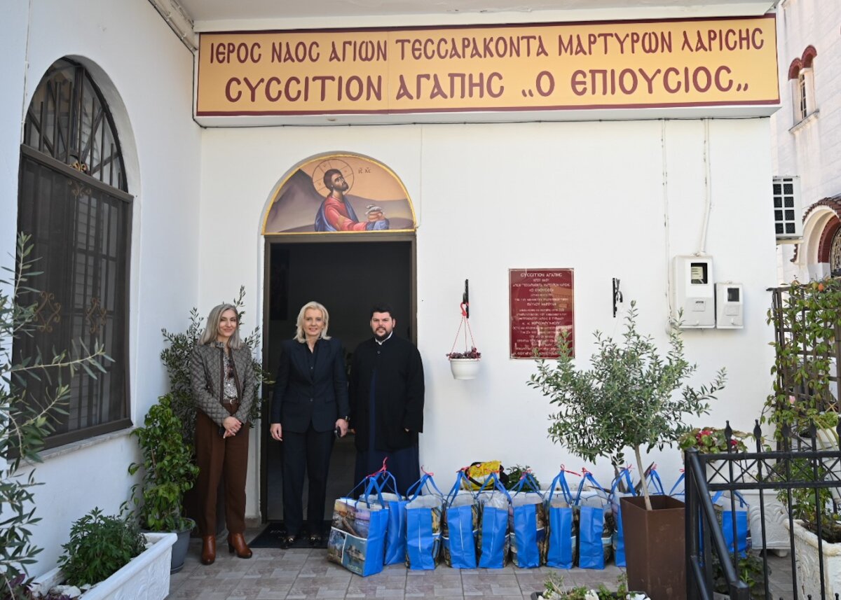 Τα συσσίτια του Ιερού Ναού Αγίων Τεσσαράκοντα Μαρτύρων στη Λάρισα επισκέφθηκε η Γενική Γραμματέας της Αποκεντρωμένης Διοίκησης Θεσσαλίας – Στερεάς Ελλάδας, κα Ρένα Καραλαριώτου, προσφέροντας τρόφιμα και στηρίζοντας έμπρακτα το σημαντικό κοινωνικό έργο της ενορίας.