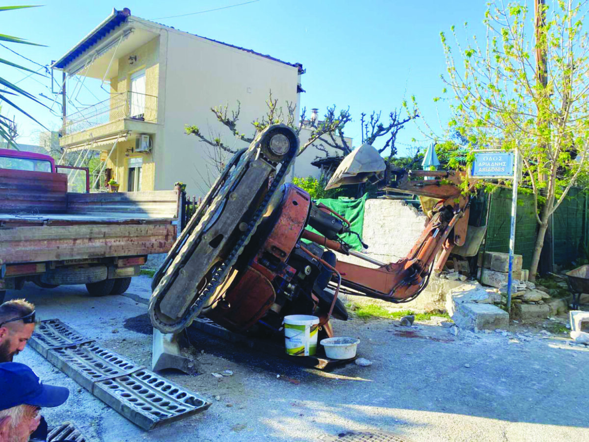 Την ώρα του ατυχήματος, στη συμβολή των οδών Αριάδνης και Σεμέλης, το συνεργείο είχε τελειώσει τις εργασίες της ημέρας. Ο 58χρονος έπρεπε να ανεβάσει το τσαπάκι πάνω σε φορτηγό, προκειμένου το μηχάνημα έργου να μεταφερθεί πίσω στη βάση.