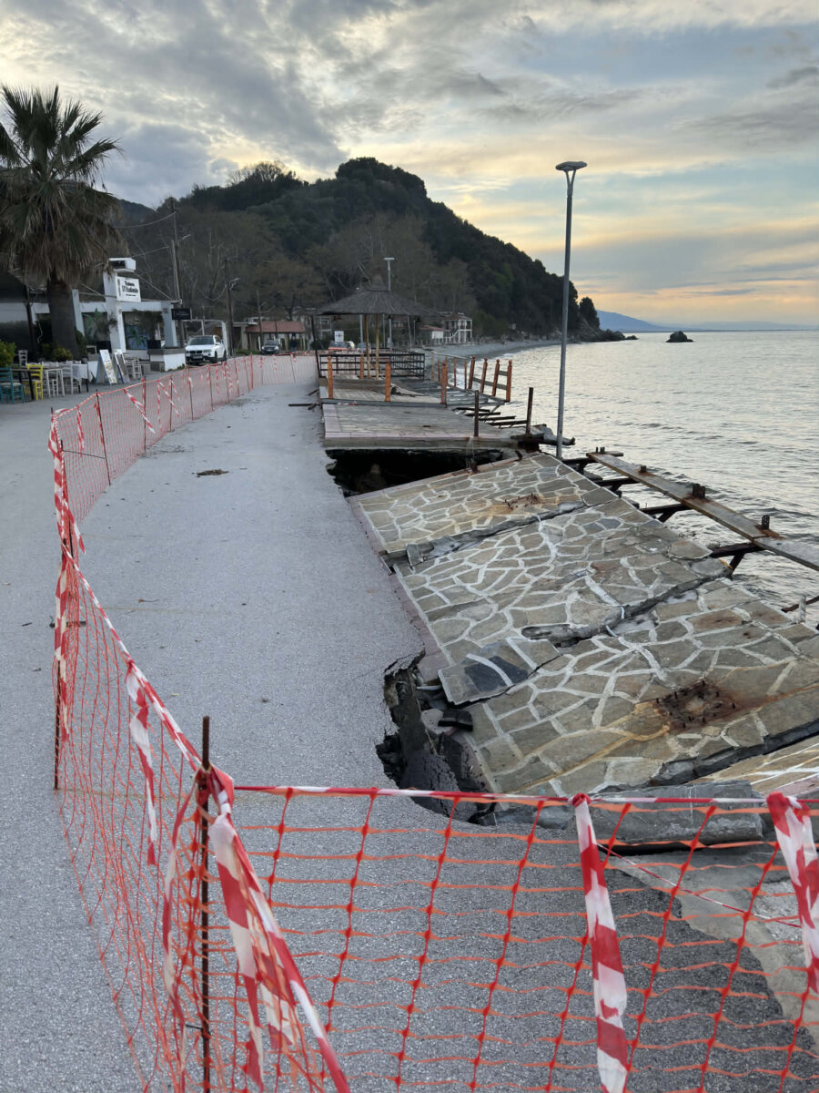 «Σας ενημερώνουμε ότι από σήμερα 07/04/2026, σύμφωνα με την 132/2026 Απόφαση Δημάρχου και την σύμφωνη γνώμη του ΑΤ Τεμπών, το τμήμα της παραλιακής οδού του οικισμού Κόκκινου Νερού που υπέστη εκτεταμένες βλάβες κατόπιν της εκδήλωσης ακραίων καιρικών φαινομένων θα παραμείνει κλειστό για την διέλευση οχημάτων, πλην των μονίμων κατοίκων και των αναγκών φορτοεκφόρτωσης των υφιστάμενων καταστημάτων, έως ότου αποκατασταθούν οι ζημιές».