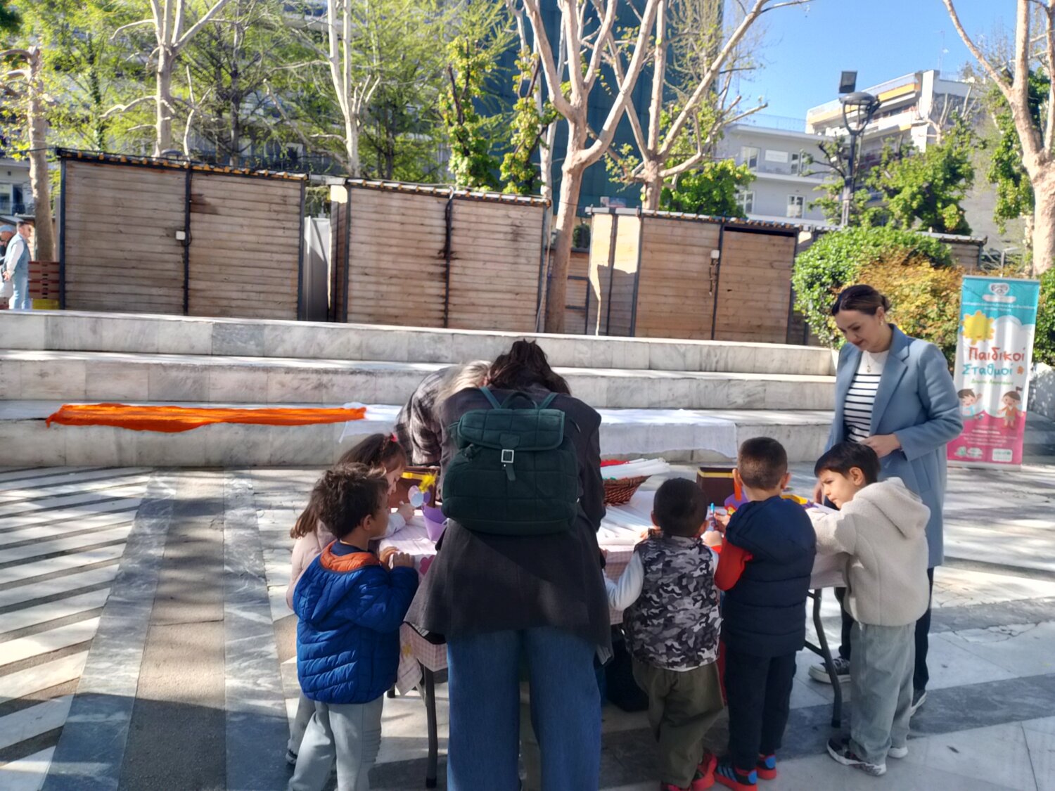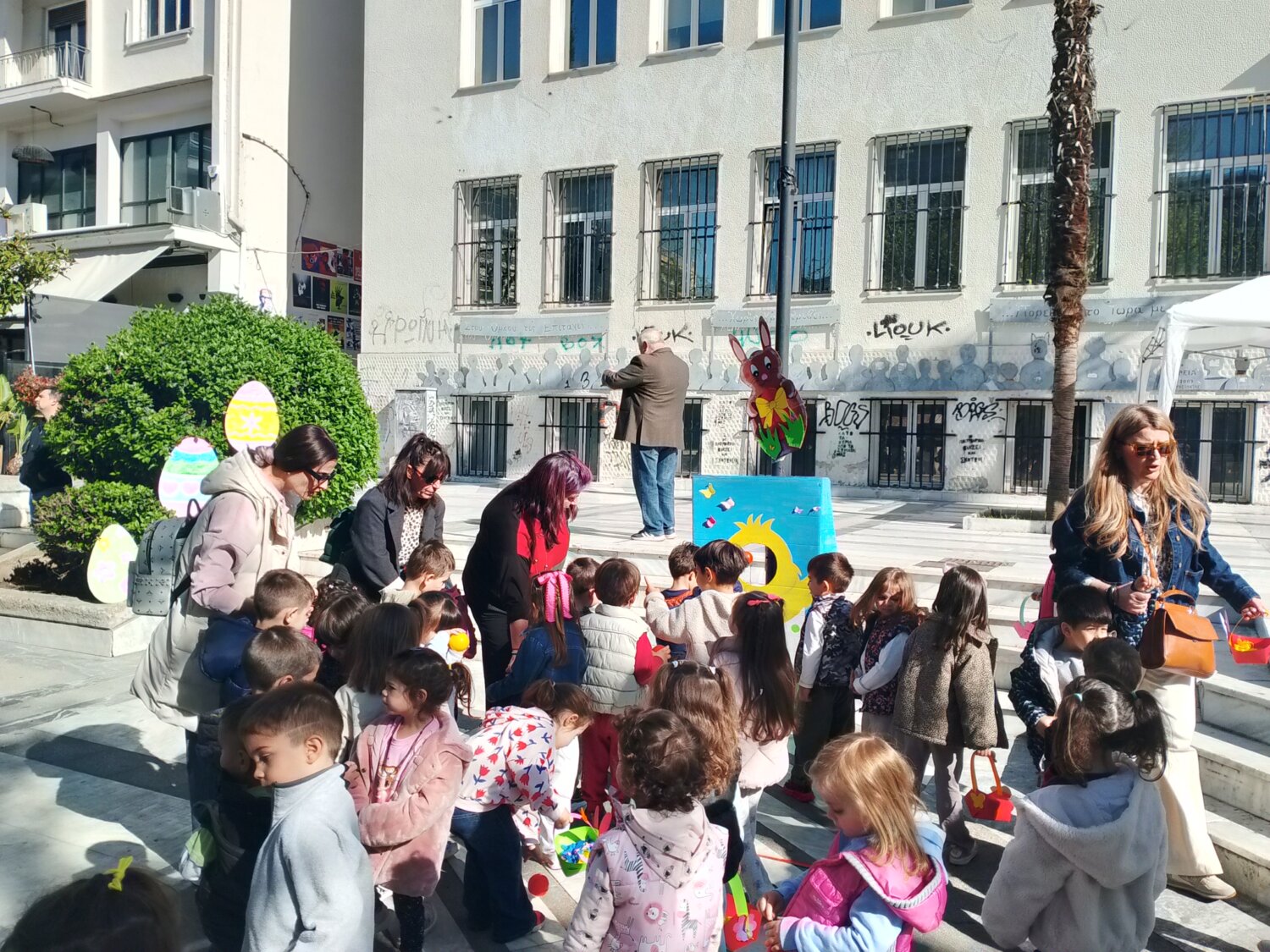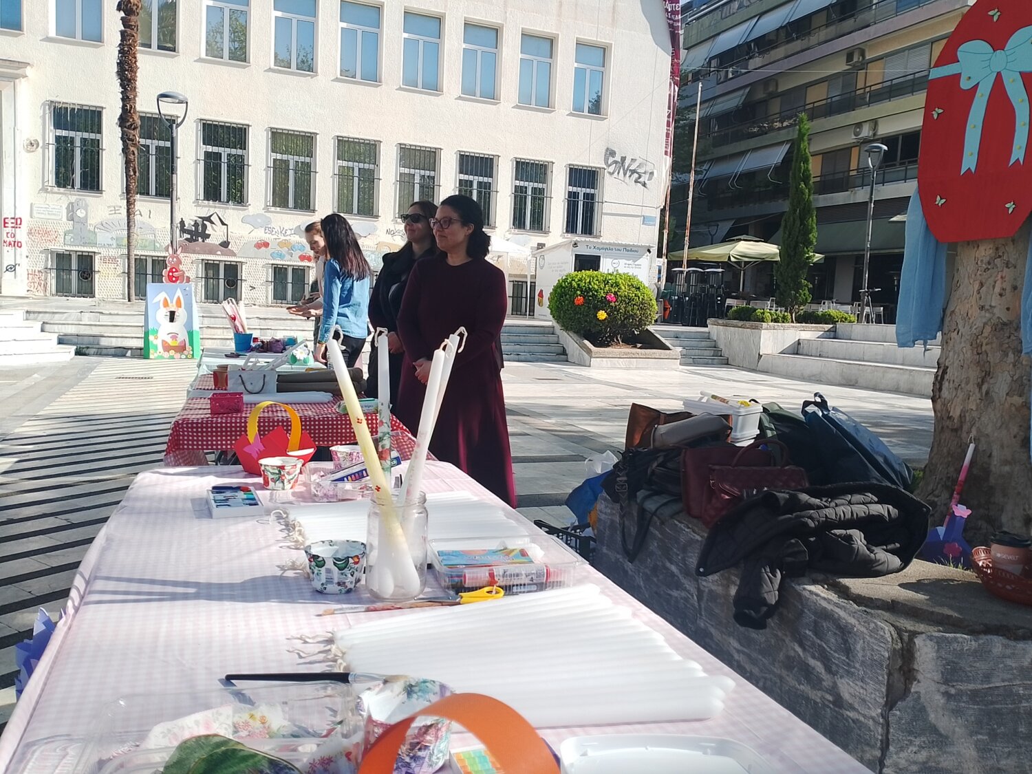 Ένα πολύχρωμο εργαστήρι, για πασχαλινές κατασκευές, στήθηκε σήμερα Μεγάλη Τρίτη, στην πλατεία Ταχυδρομείου, στο πλαίσιο δράσης που οργανώνει ο Δήμος Λαρισαίων και η Διεύθυνση Παιδείας-Τμήμα Παιδικών Σταθμών, για τους μικρούς συμπολίτες μας.