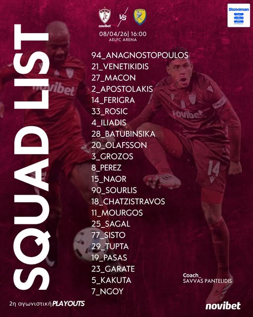 Αντίθετα, εκτός έμειναν οι Μελίσσας, Κοσονού, Ατανάσοφ, Δημινίκος, καθώς και Παπαγεωργίου, Αντράντα, Στάικος και Παντελάκης, απουσίες που επηρεάζουν τη συνολική ισορροπία της ομάδας σε άμυνα και μεσαία γραμμή.
