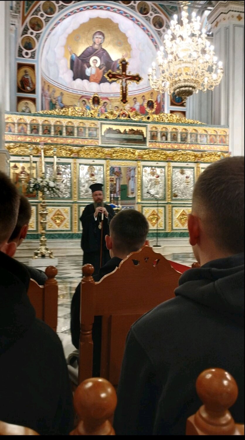 Στον Μητροπολιτικό ναό της πόλης, Άγιο Σπυρίδωνα, τους υποδέχτηκε θερμά ο Σεβασμιώτατος Μητροπολίτης Αιτωλίας και Ακαρνανίας κ.κ. Δαμασκηνός, ο οποίος τους μίλησε για την πνευματική και ιστορική παρακαταθήκη της πόλης, μοιράζοντας σε όλους αναμνηστικά ενθύμια της επίσκεψής τους. Αξίζει να σημειωθεί ότι το διήμερο 28 Φεβρουαρίου και 1 Μαρτίου, ο Σεβασμιώτατος Μητροπολίτης Αιτωλίας και Ακαρνανίας κ.κ. Δαμασκηνός, ανταποκρινόμενος στη πρόσκληση του Σεβασμιωτάτου Μητροπολίτου Ελασσώνος κ. Χαρίτωνος, είχε μεταφέρει στην Τσαριτσάνη, στον Ιερό Ναό Κοιμήσεως της Θεοτόκου, τον Τίμιο Σταυρό του Εθνομάρτυρα Επισκόπου Ρωγών, με τον οποίο ο Ιωσήφ Ρωγών ευλογούσε τους αγωνιστές κατά την πολιορκία του Μεσολογγίου και τη νύχτα της Εξόδου.