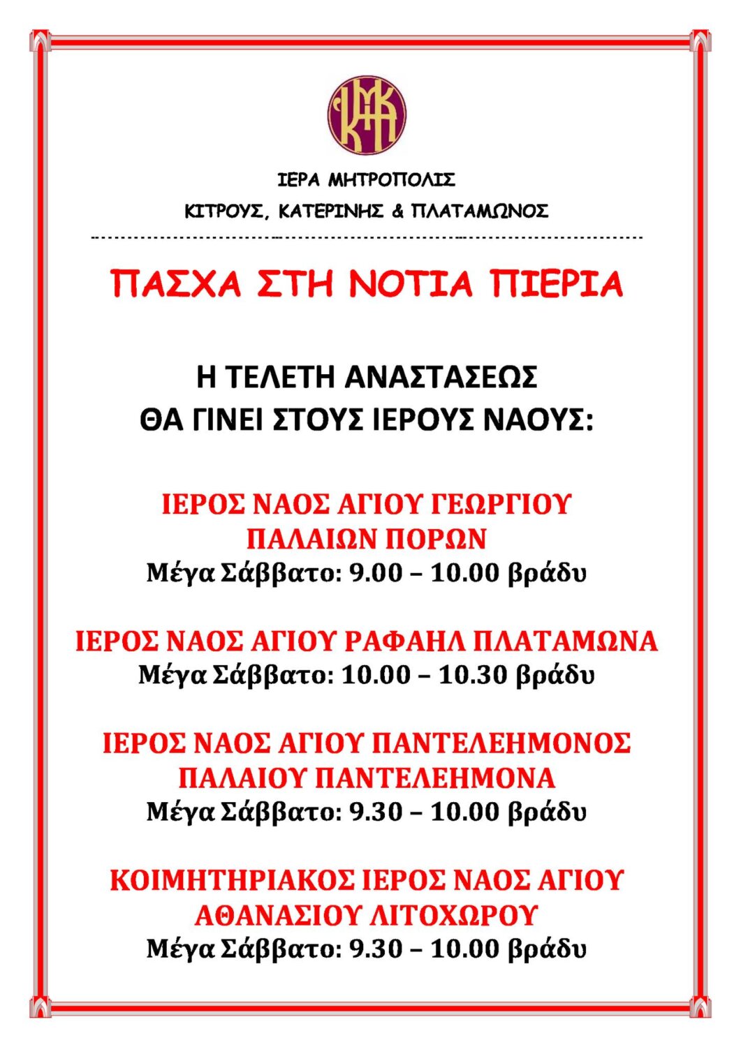 Σε ανακοίνωση της Ιεράς Μητροπόλεως Κίτρους, Κατερίνης και Πλαταμώνος επισημαίνονται τα εξής: