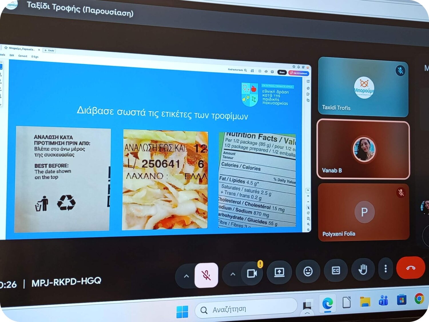 Εργαστήριο ευαισθητοποίησης με αντικείμενο τη μείωση της σπατάλης τροφίμων και την προώθηση της υγιεινής και βιώσιμης διατροφής. Το εργαστήρια διεξήχθη διαδικτυακά και διήρκεσε 1 διδακτική ώρα (45 λεπτά). Θα ακολουθήσουν: