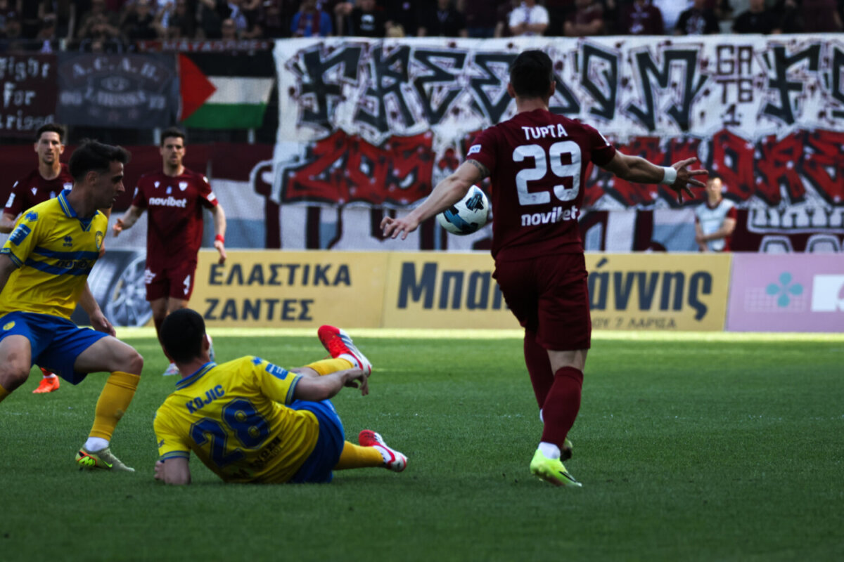 31’ Νέα επιθετική προσπάθεια της ΑΕΛ με τον Σαγάλ να βρίσκει τον Μασόν στον άξονα και στα όρια της περιοχής, το σουτ του όμως έχασε δύναμη από την κόντρα που έβαλε ο Σιελής