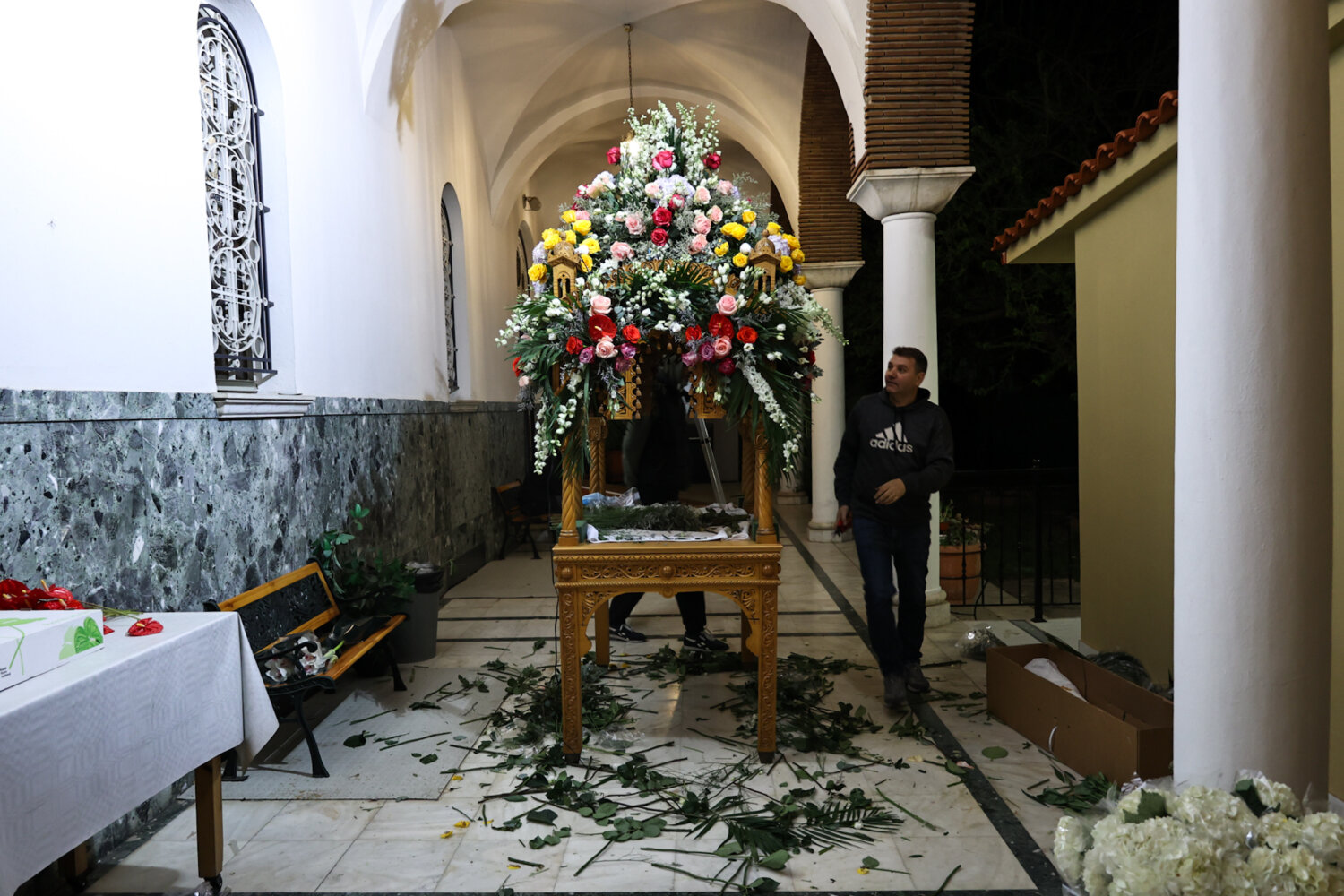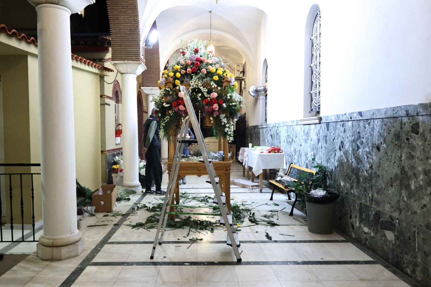 Μετά το πέρας των 12 Ευαγγελίων, στον εξωτερικό χώρο του Αγίου Αχιλλίου ξεκίνησε το στόλισμα του Επιταφίου, το οποίο θα υποδεχτεί το σώμα του Χριστού την Μεγάλη Παρασκευή το πρωί.