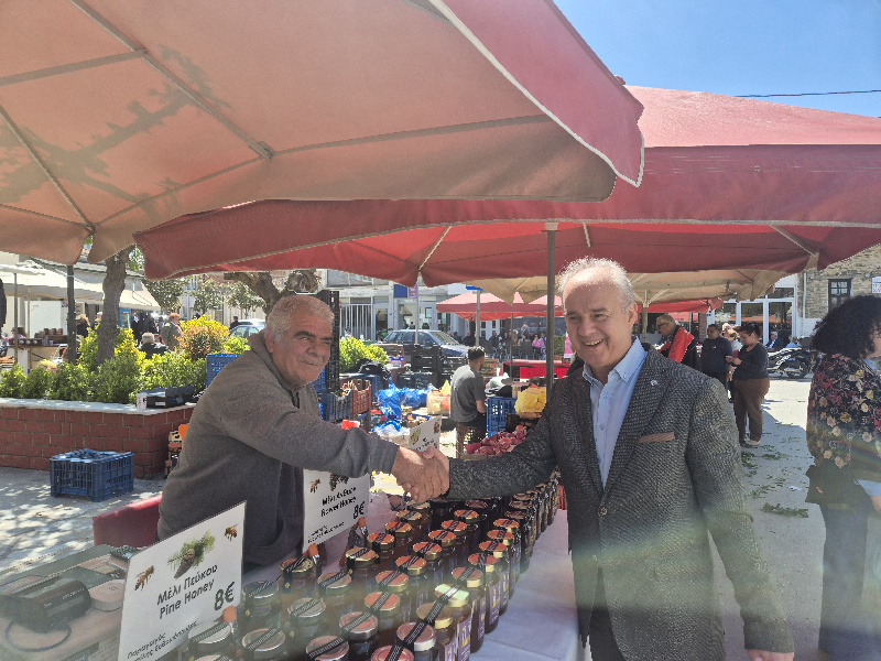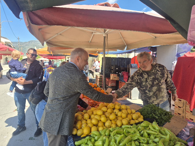 Κατά τη διάρκεια της επίσκεψής του, περιηγήθηκε στους πάγκους, συνομίλησε με παραγωγούς και εμπόρους, αντάλλαξε ευχές για Καλή Ανάσταση και Καλό Πάσχα με κατοίκους και επισκέπτες, ενώ δεν παρέλειψε να απολαύσει έναν σύντομο καφέ με συνεργάτες και δημότες σε τοπικό κατάστημα της περιοχής.