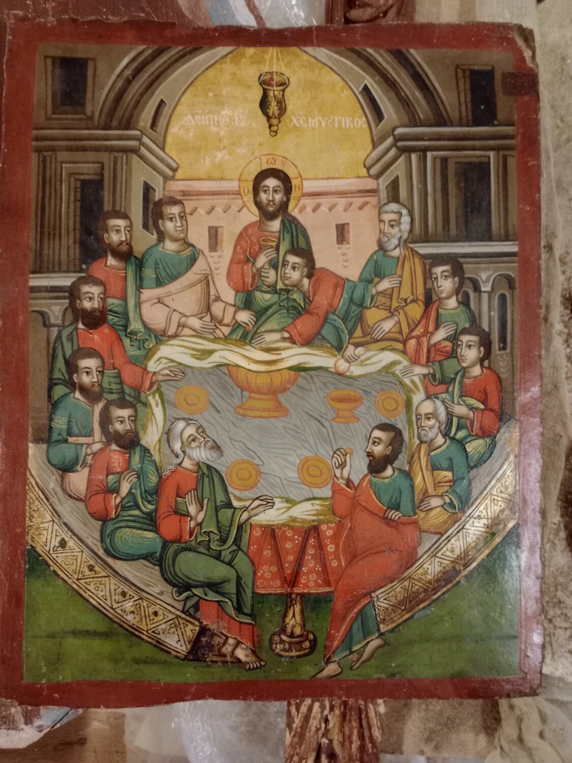 Θα σταθούμε στη σκηνή του Θρήνου από τη Μονή Ολυμπιώτισσας (14ος αι.), όπου ο Χριστός είναι ξαπλωμένος στη μαρμάρινη πορφυρή πλάκα. Η πλάκα αυτή αποδίδει το περίφημο κειμήλιο, που είχε έρθει από την Εφεσο τον 12ο αιώνα και φυλασσόταν στη μονή Παντοκράτορα στην Κωνσταντινούπολη, ενώ αμέσως μετά εντάχθηκε στην εικονογραφία της σκηνής. Τα κύρια πρόσωπα του δράματος, η Παναγία, ο Ιωάννης, ο Ιωσήφ Αριμαθείας, έχουν μόλις κατεβάσει το Χριστό από το Σταυρό και τον ασπάζονται περιπαθώς, ενώ ο Νικόδημος ακουμπά στη διπλή σκάλα, που χρησιμοποιήθηκε στην Αποκαθήλωση. Ο Σταυρός είναι πάντα παρών στην παράσταση και οι άγγελοι που καλύπτουν τα πρόσωπά τους αυξάνουν τη δραματική φόρτιση της σκηνής, όπως και οι δύο ψηλοί βράχοι στις άκρες.