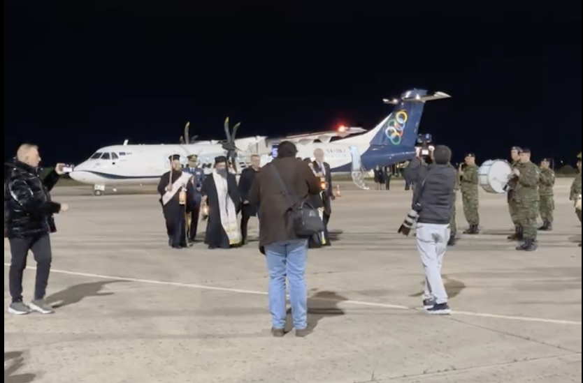 Με κάθε επισημότητα και σε κλίμα βαθιάς συγκίνησης έφτασε το απόγευμα του Μεγάλου Σαββάτου το Άγιο Φως στο αεροδρόμιο της Νέας Αγχιάλου, ενόψει της Ανάστασης.
