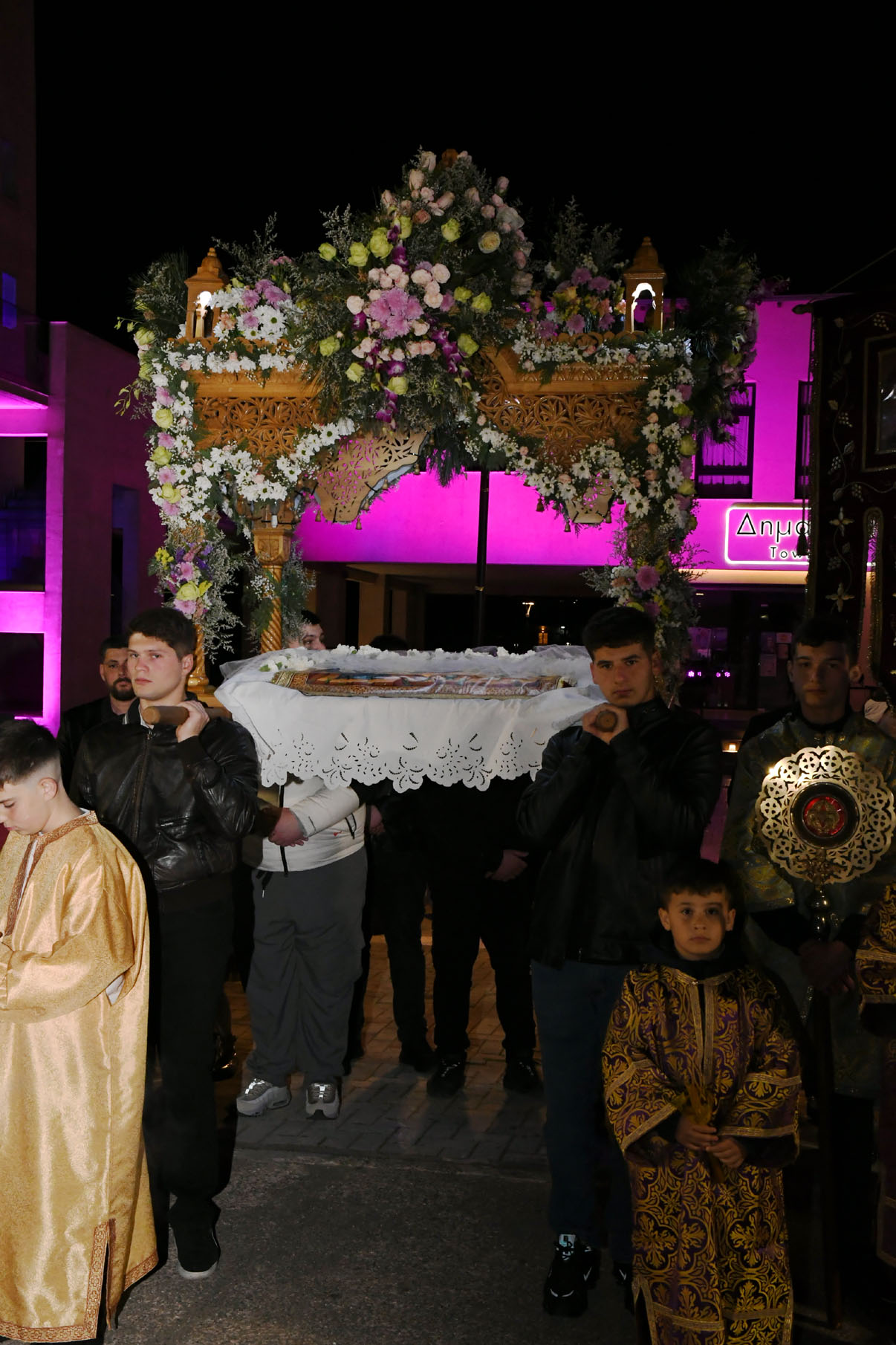 Πολλοί ήταν οι πιστοί που βρέθηκαν στον Μητροπολιτικό Ιερό Ναό των Αγίων Αντωνίων, στους ενοριακούς ναούς του Αγίου Γεωργίου και του Τιμίου Προδρόμου, στα μοναστήρια και στους ναούς των χωριών της ευρύτερης περιοχής, όπου με ιδιαίτερη κατάνυξη προσκύνησαν τους Επιταφίους, τους οποίους από νωρίς και με ξεχωριστή φροντίδα οι γυναίκες είχαν στολίσει.