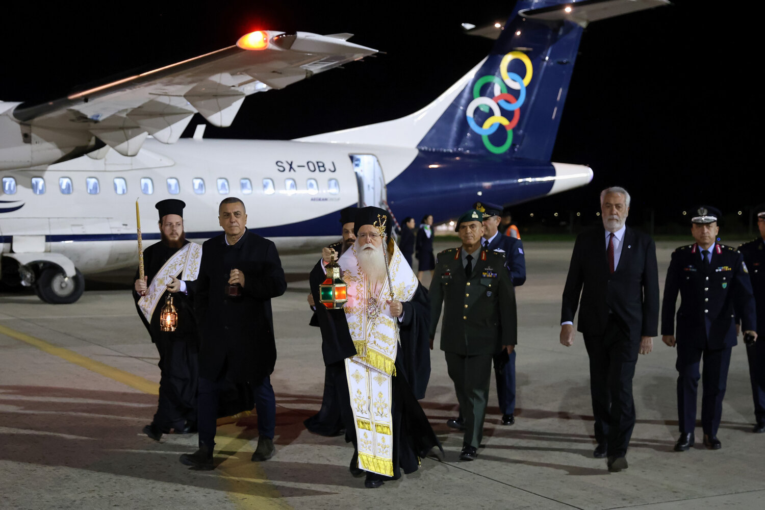 Το Άγιο Φως μεταφέρθηκε από την Αθήνα με ειδική πτήση, προκειμένου να διασφαλιστεί η έγκαιρη διανομή του σε όλες τις ενορίες και τους ιερούς ναούς της ευρύτερης περιφέρειας ενόψει της Αναστάσιμης Ακολουθίας.