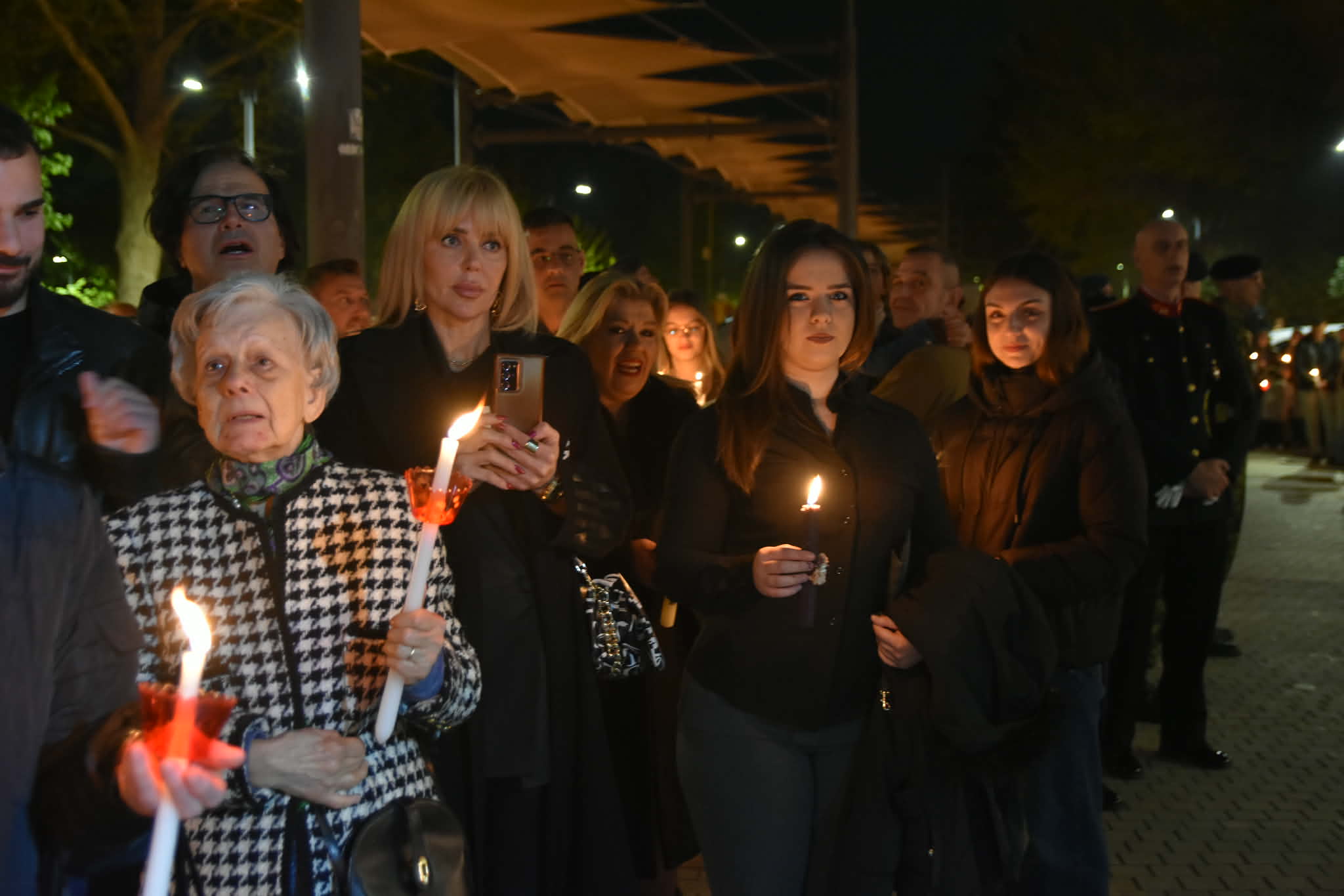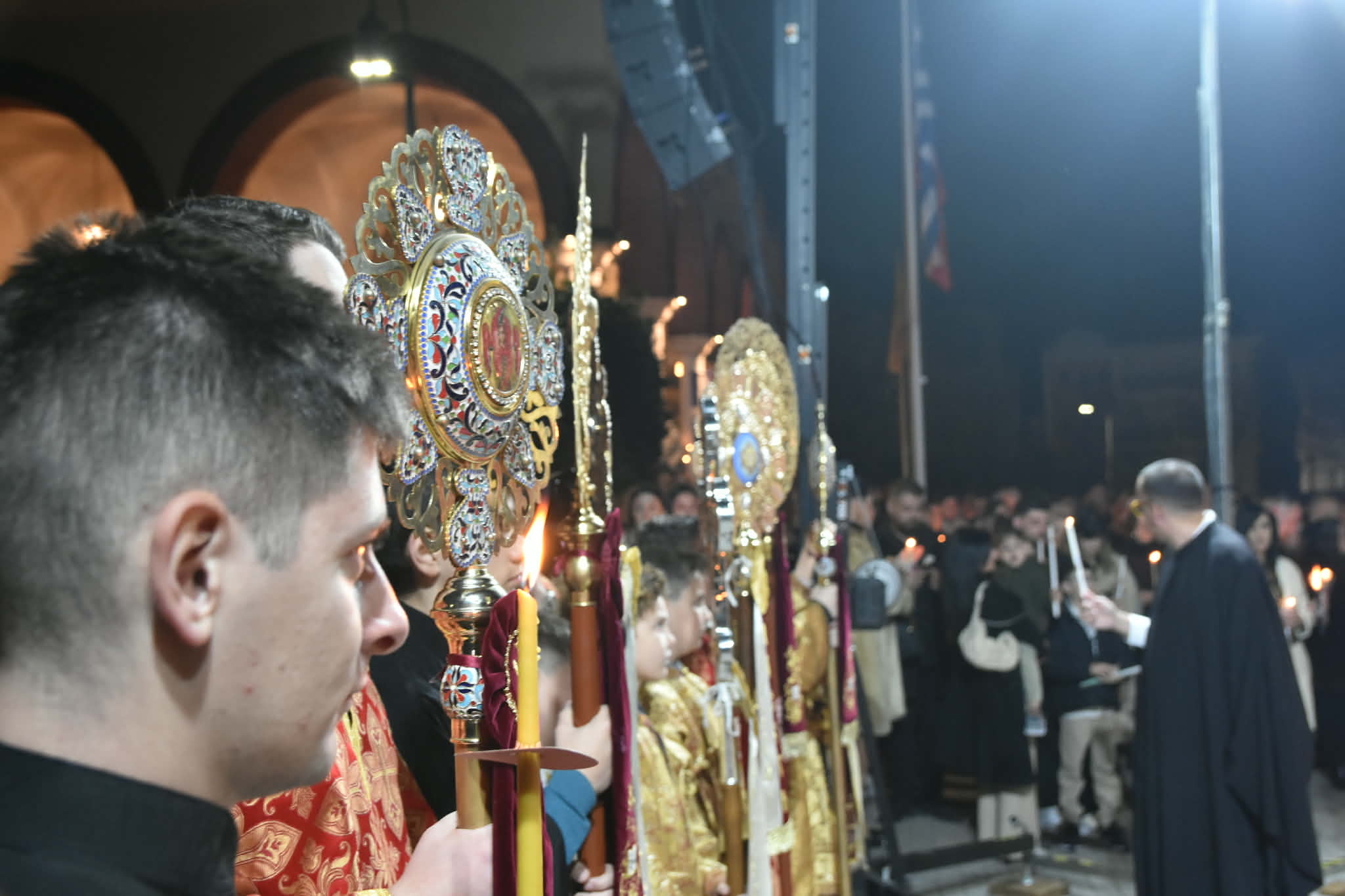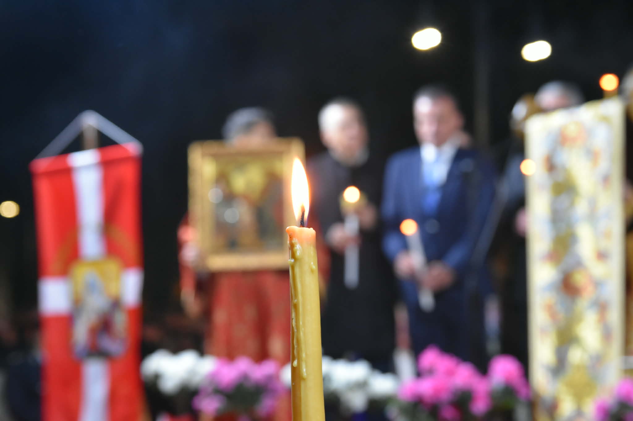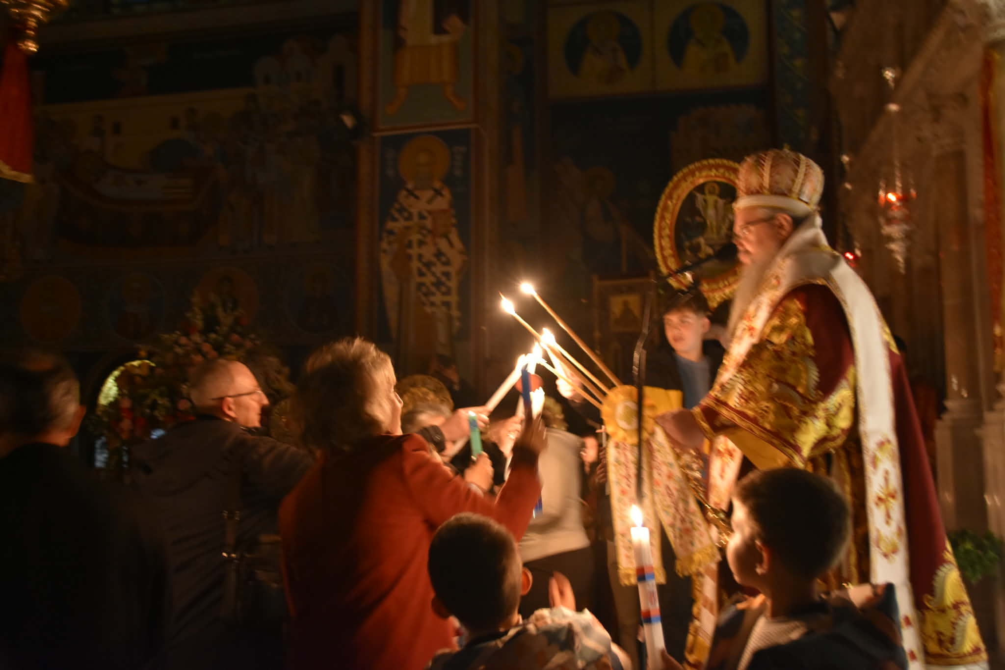 Πλήθος πιστών κατέκλυσε τον ναό, κρατώντας τις λαμπάδες τους αναμμένες, μεταφέροντας το Άγιο Φως και ανταλλάσσοντας ευχές ελπίδας και αγάπης.