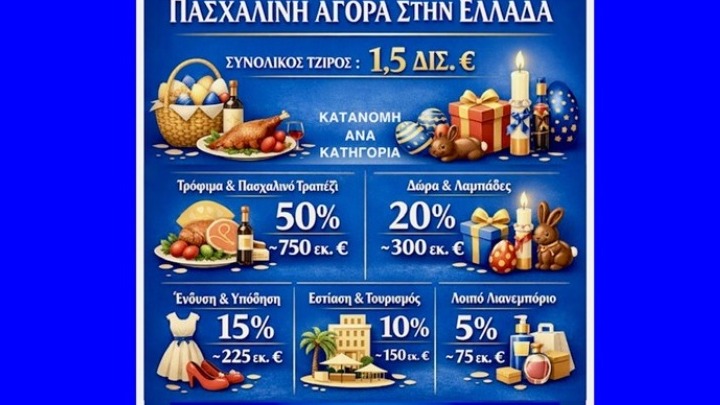 «Η πασχαλινή αγορά του 2026 στην Ελλάδα κινήθηκε σε ένα περιβάλλον έντονων πιέσεων στο διαθέσιμο εισόδημα, αλλά και προσαρμογής της καταναλωτικής συμπεριφοράς στα νέα δεδομένα. Ο πασχαλινός τζίρος των 7-10 ημερών κρατήθηκε και εφέτος περίπου στο 1,5 δισ. ευρώ, με υψηλή ένταση κατανάλωσης και με σημαντικό μοχλό το 1 δισ. ευρώ του Δώρου Πάσχα.