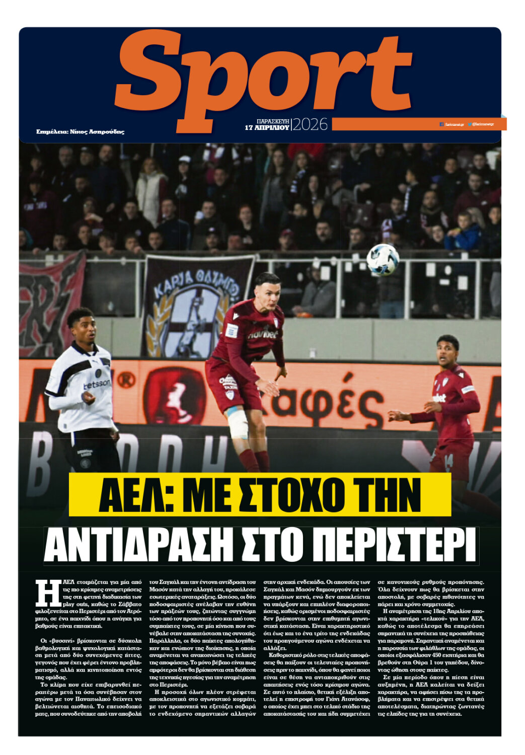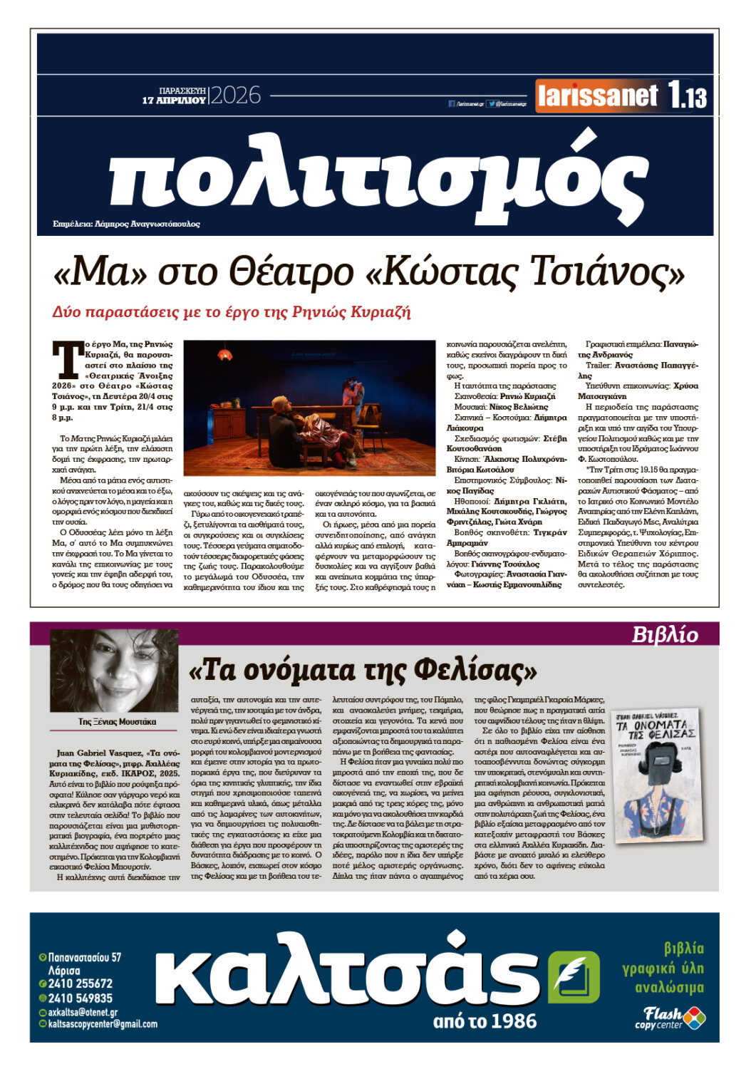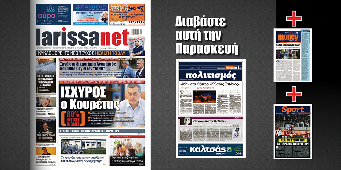 Ρεπορτάζ, άρθρα, συνεντεύξεις και όλο το παρασκήνιο της εβδομάδας στο νέο φύλλο της larissanet.