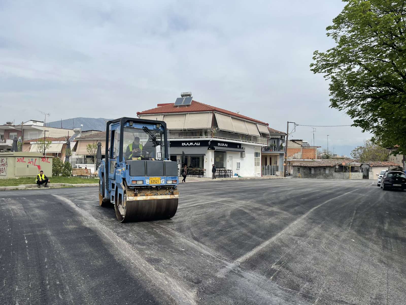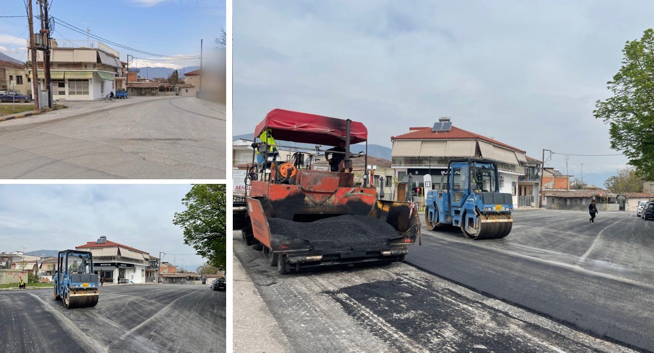 Σε εξέλιξη βρίσκεται νέα ασφαλτόστρωση σε ένα ιδιαίτερα κομβικό και πολυσύχναστο σημείο του Τυρνάβου, στη συμβολή των οδών Λαρίσης και Βενιζέλου, στην αρχή της εισόδου της πόλης, απέναντι από την Τούμπα.