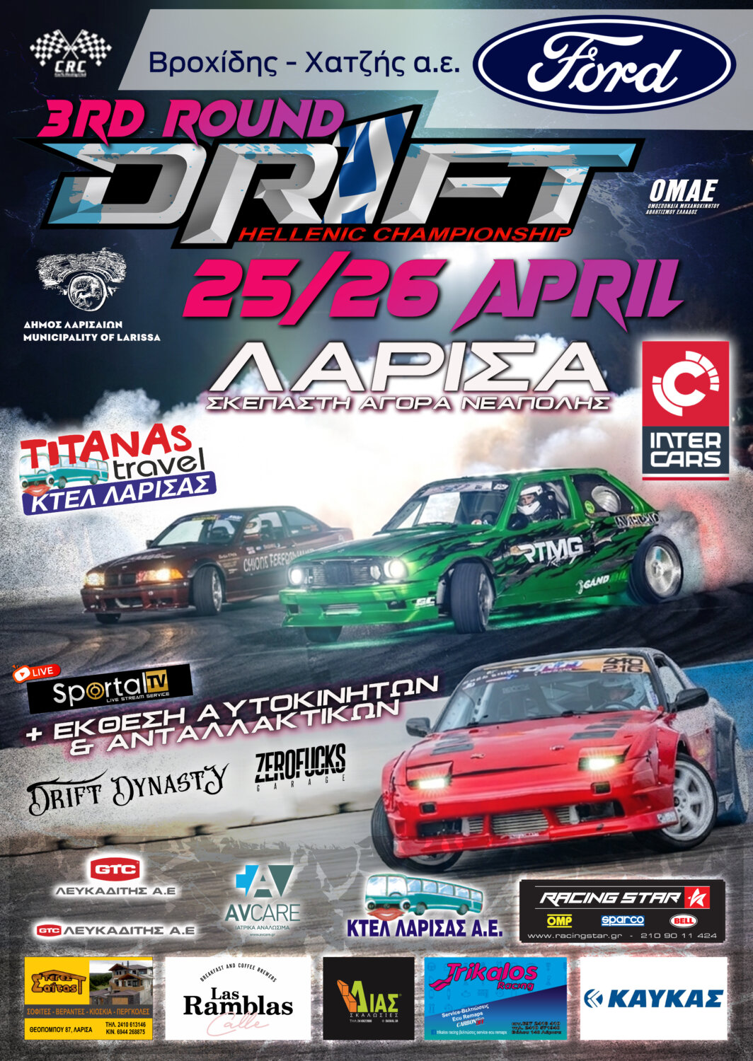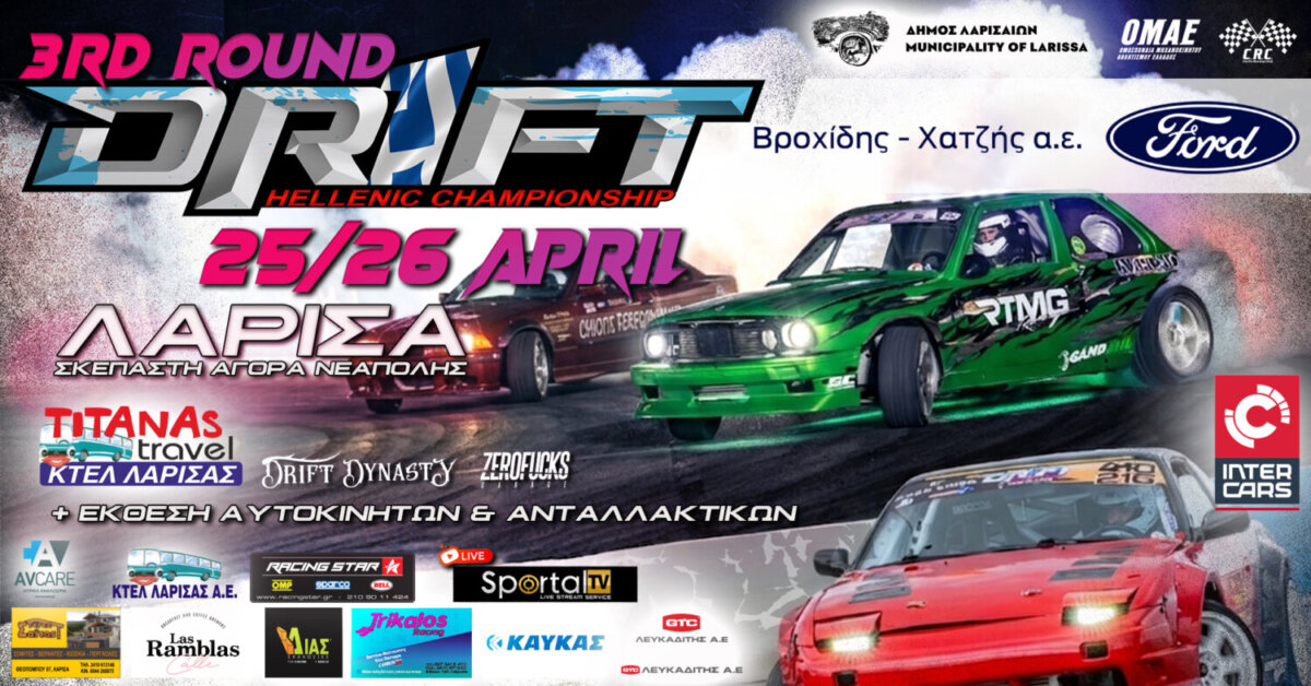Ο 3ος γύρος του Πανελληνίου Πρωταθλήματος Drift έρχεται για πρώτη φορά στη Λάρισα, προσφέροντας ένα μοναδικό θέαμα υψηλής έντασης και αδρεναλίνης.