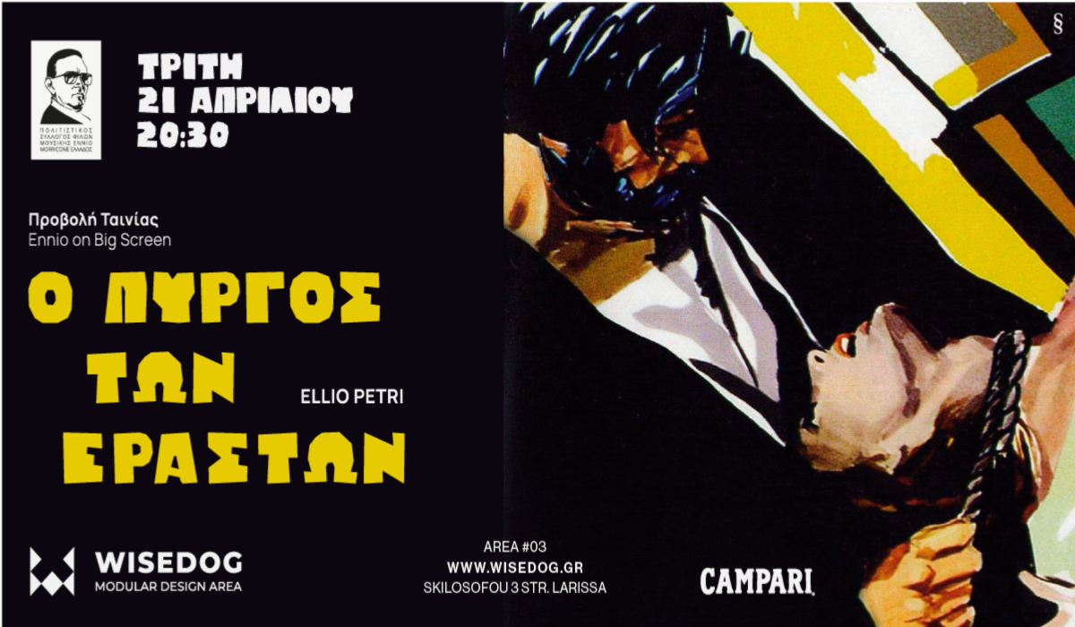 Η ομάδα Ennio on Big Screen, σε συνεργασία με τον Σύλλογο Φίλων Ennio Morricone και το Wisedog, παρουσιάζει για πρώτη φορά στην Ελλάδα την ταινία «Ο Πύργος των Εραστών» (1968) σε σκηνοθεσία Έλιο Πέτρι και με πρωταγωνιστές τους Φράνκο Νέρο και Βανέσα Ρέντγκρέιβ.