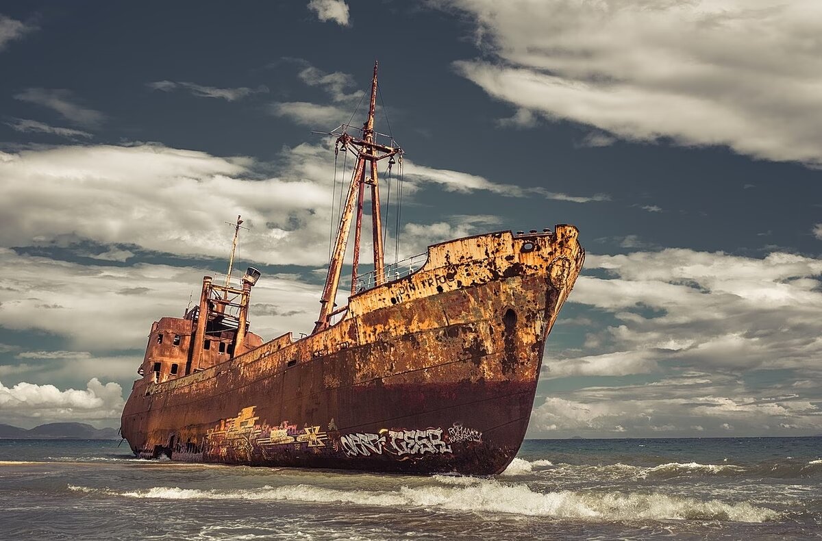 Σταδιακά το γνωστό ναυάγιο αλλάζει οριστικά μορφή, με το μεταλλικό σκαρί του να διαλύεται μένοντας απλό κουφάρι που δείχνει να λυγίζει οριστικά.