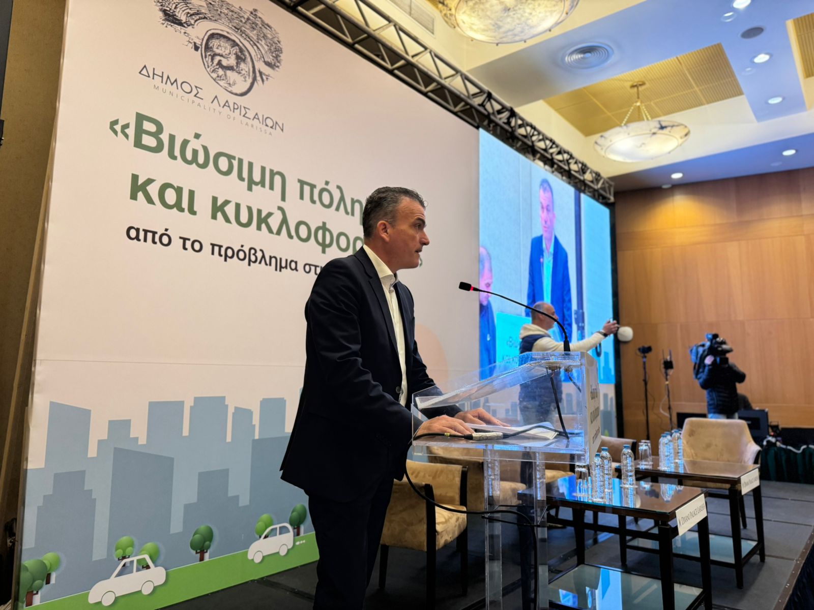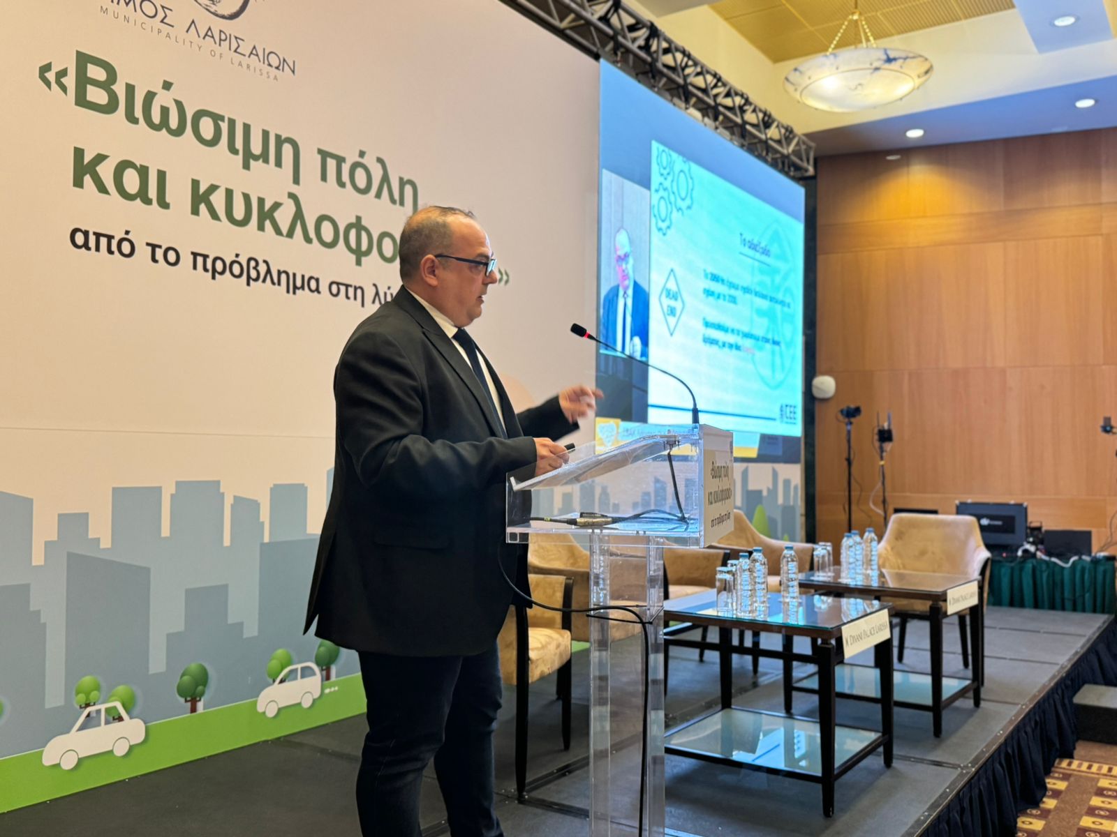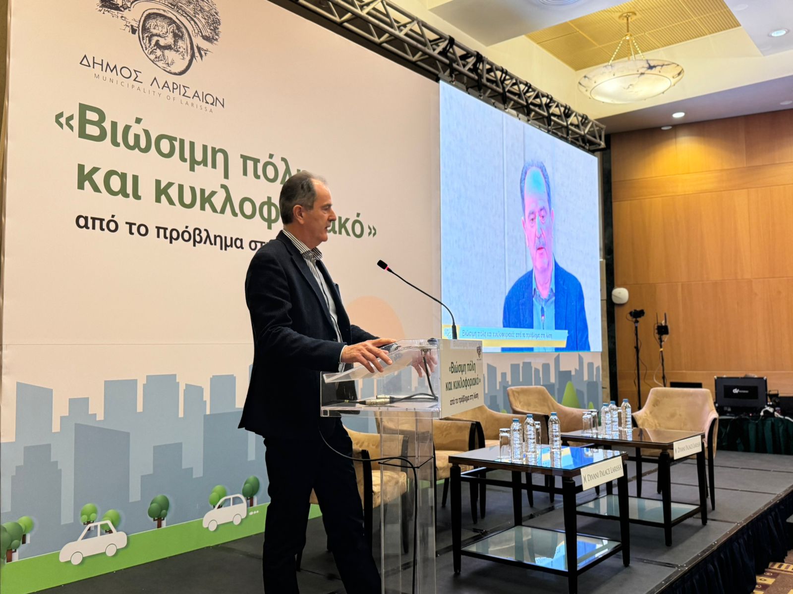Από την πλευρά του ο πρόεδρος του Επιμελητηρίου Λάρισας, Χρήστος Γιακουβής, συνέδεσε την κινητικότητα με τις επιχειρήσεις και στάθηκε ιδιαίτερα στο κομμάτι της στάθμευσης.