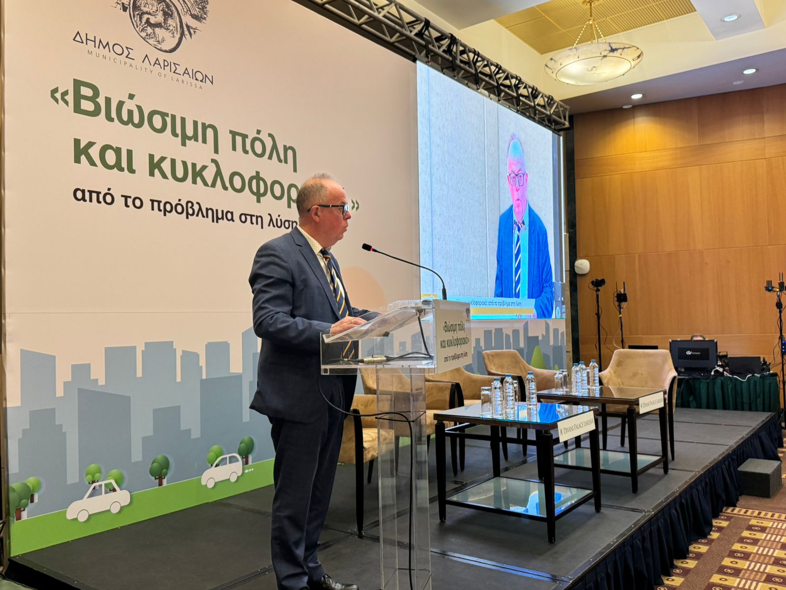Στη συνέχει ο Πρόεδρος του ΤΕΕ Κεντρικής & Δυτικής Θεσσαλίας, Νίκος Παπαγεωργίου τόνισε ότι «οφείλουμε να κοιτάξουμε στο τι μπορούμε να κάνουμε για τη Λάρισα του αύριο. Δεν μιλάμε μόνο με τεχνικούς όρους, αλλά με τους όρους της πόλης, της βιωσιμότητας και του μέλλοντος», εξηγώντας πως σήμερα ο αριθμός των οχημάτων έχει φτάσει σε 110.000 οχήματα στην πόλη, σε έναν πληθυσμό 155.000 πολιτών, ενώ έως το 2050 ο αριθμός θα έχει αυξηθεί σύμφωνα με τα δεδομένα στα 150.000 οχήματα. Η Λάρισα έχει μία δεύτερη ευκαιρία και πρέπει να απαντήσουμε στο αν θα σχεδιάσουμε το μέλλον ή θα συζητάμε το παρελθόν», κατέληξε ο κ. Παπαγεωργίου.
