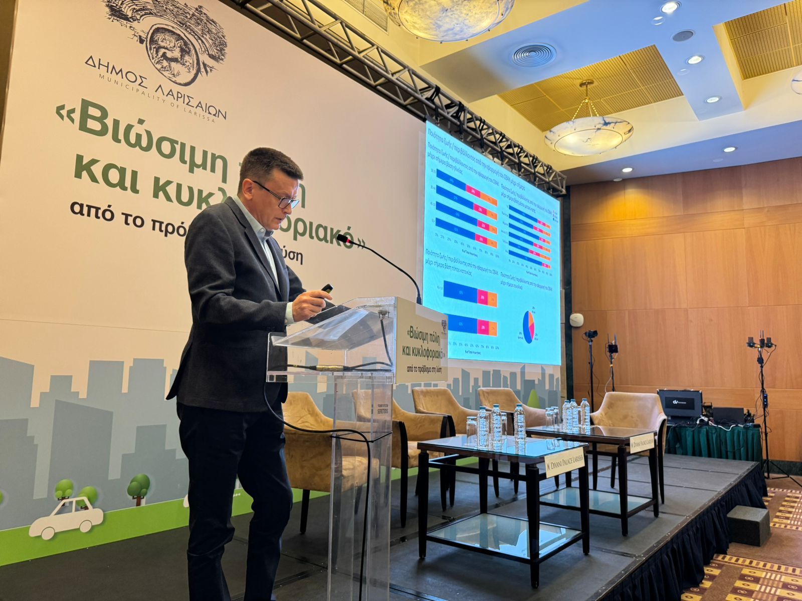 Όπως και στο θέμα συζήτησης γύρω από τις «Καινοτόμες λύσεις, έξυπνη πόλη, Μέσα Μαζικής Μεταφοράς», αναφέρθηκε στα έργα του Δήμου Λαρισαίων ο Αντιδήμαρχος Δημοτικής Αστυνομίας & Κυκλοφοριακών Παρεμβάσεων, Κωνσταντίνος Αργυρόπουλος, αλλά και οι Καθηγητής Οδοποιίας και Οδικής Ασφάλειας Πανεπιστημίου Θεσσαλίας, Νίκος Ηλιού και Συγκοινωνιολόγος, Καθηγητής Δημοκρίτειου Πανεπιστημίου Θράκης, Βασίλης Προφυλλίδης.