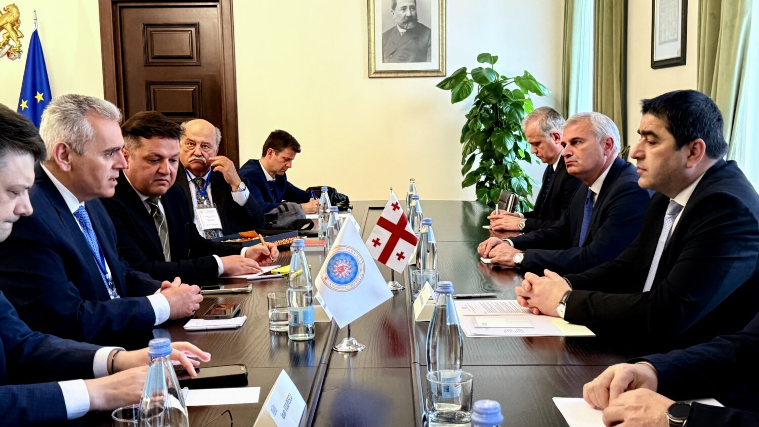Ο επικεφαλής ΓΓ της ΔΣΟ συναντήθηκε, επίσης με τον πρόεδρο της Βουλής της Γεωργίας κ. Shalva Papuashvili. Κατά τη συνάντηση ο Μάξιμος Χαρακόπουλος υπογράμμισε ότι «η Γεωργία και ευρύτερα η περιοχή του Καυκάσου ήταν ενσωματωμένη από την αρχαιότητα στον κόσμο της Ευρώπης. Η αργοναυτική εκστρατεία στο βασίλειο της Κολχίδας, αλλά και ο μύθος του Προμηθέα που βρέθηκε στον Καύκασο, αποδεικνύουν τις βαθιές ρίζες αυτών των στενών σχέσεων που δημιούργησαν τον Εύξεινο πόντο. Μια φιλόξενη θάλασσα ανταλλαγής υλικών και πνευματικών σχέσεων. Σχέσεις που ενδυναμώθηκαν στην πορεία του χρόνου, με αποκορύφωμα τον πρώιμο εκχριστιανισμό της Γεωργίας τον 4ο αιώνα με τη συμβολή της ισαποστόλου Νίνας, η οποία καταγόταν από την αγιοτόκο Καππαδοκία, τόπο καταγωγής και των παππούδων μου. Καθ’ όλη αυτή την μακρά περίοδο που ακολούθησε, η Γεωργία ήταν ένα φρούριο της Ορθοδοξίας που διαμόρφωσε καταλυτικά την ταυτότητα του λαού της. Και ήταν αυτή η σχέση της με την Ορθοδοξία που τη βοήθησε να βγει και από τη δοκιμασία των χρόνων του υπαρκτού σοσιαλισμού. Σήμερα, η χώρα σας απολαμβάνει την τέταρτη δεκαετία της ανεξαρτησίας της και ατενίζει με αυτοπεποίθηση το μέλλον».