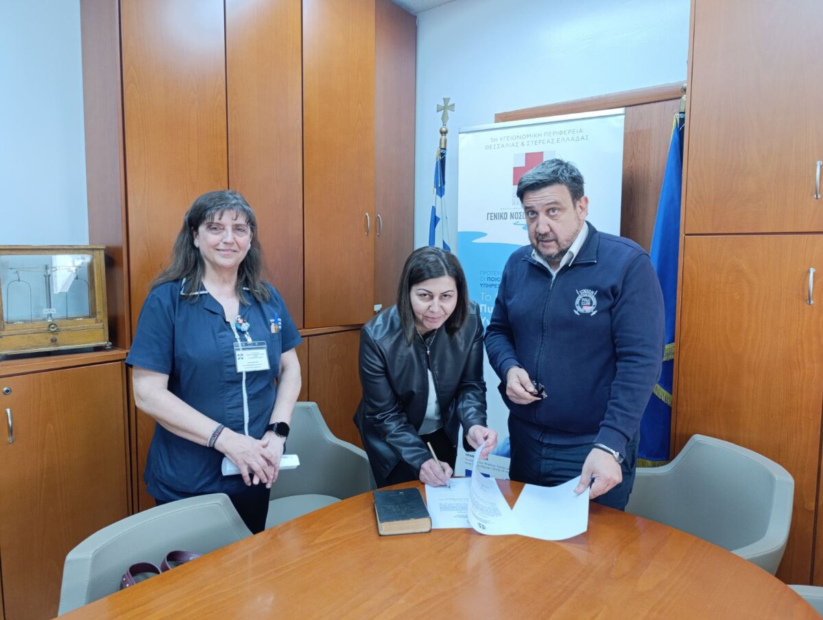 Με απόφαση του Διοικητή της 5ης ΥΠΕ κ. Φώτη Σερέτη, παρουσία του Διευθυντή της ΜΕΘ κ. Αχιλλέα Χόβα υπεγράφει από τον Διοικητή του Γενικού Νοσοκομείου Λάρισας κ. Γρηγορίου Βλαχάκη σύμβαση ιδιωτικού δικαίου ορισμένου χρόνου με την Ιατρό Ζηκούδη Δήμητρα Γεωργία του Χρήστου, ειδικότητας Εσωτερικής Παθολογίας για εξειδίκευση στην Μονάδα Εντατικής Θεραπείας.