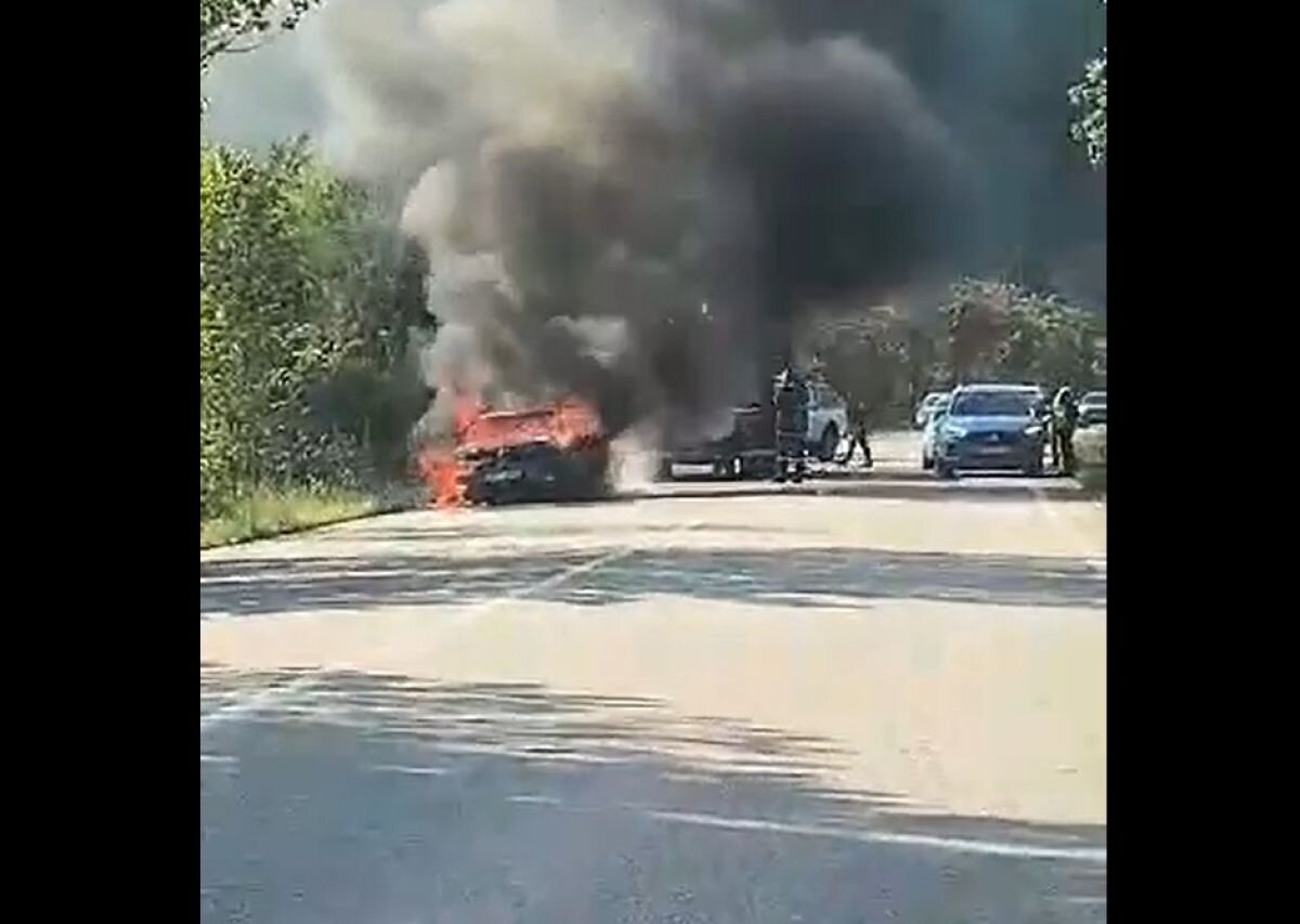 Στις φλόγες τυλίχθηκε το απόγευμα της Κυριακής 19 Απριλίου αυτοκίνητο στην Επ. Ο. Καρδίτσας – Μουζακίου.