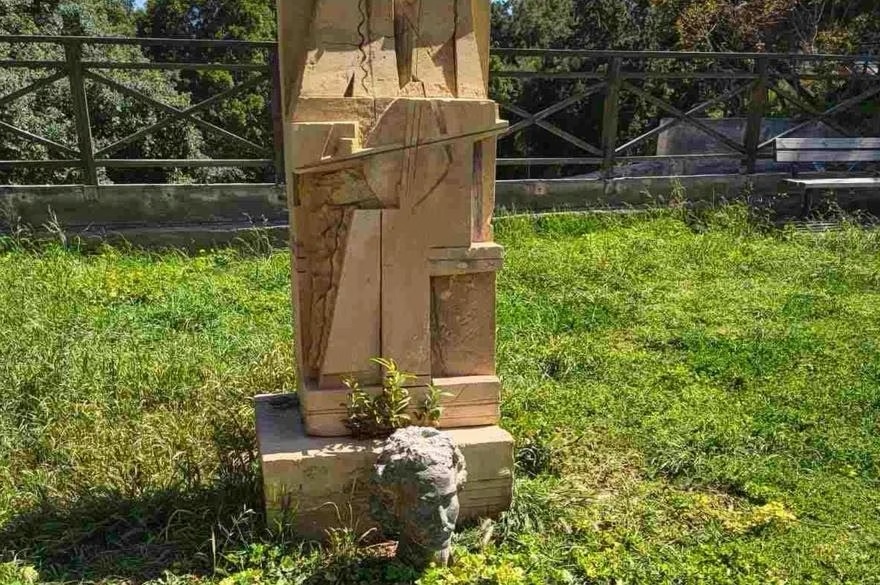 Μάλιστα όπως ανέφερε στην αντιδήμαρχο ο ειδικός εξ Αθηνών η κεφαλή στηριζόταν σε τρεις πύρους εκ των οποίων οι δύο έμειναν στη βάση και ένας πάνω στο μπρούτζινο γλυπτό, ένδειξη ότι δεν έφυγε από μόνο του από τη θέση του.