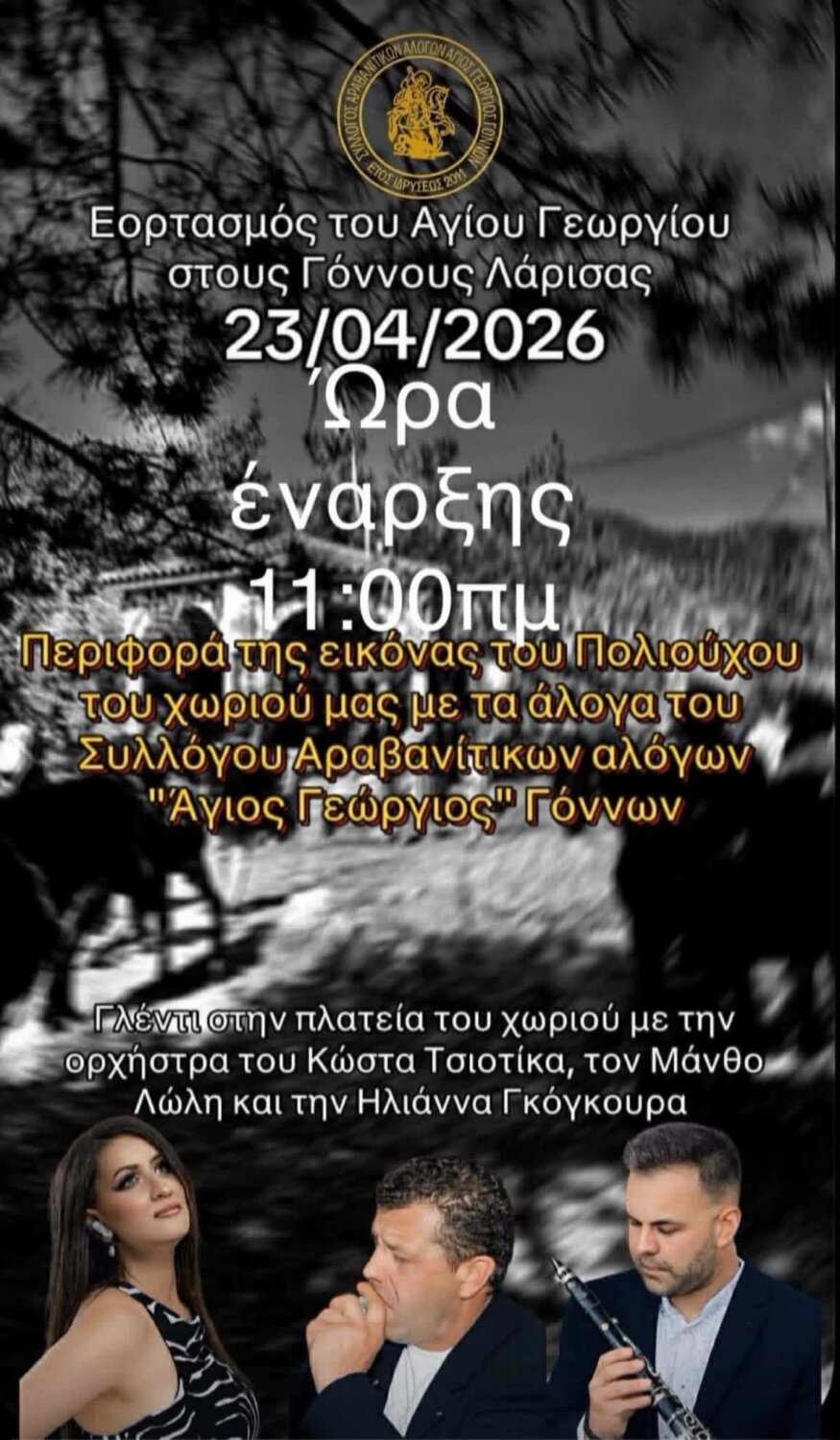 Για ακόμη μια χρονιά με μεγαλοπρέπεια θα γιορταστεί ο προστάτης των Γόννων, Άγιος Γεώργιος, την Πέμπτη 23 Απριλίου 2026.