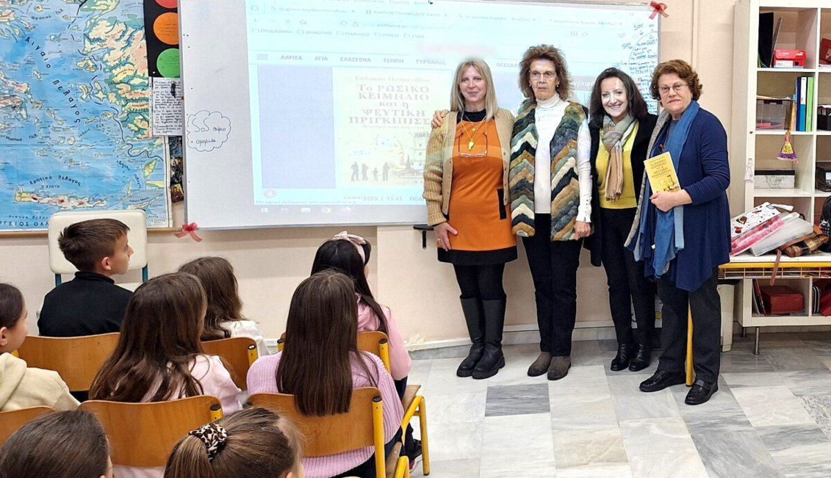 Πιο συγκεκριμένα, τις τάξεις Δ1 και Δ2, με υπεύθυνες εκπαιδευτικούς την Παπά Στυλιανή και την Λυρίτση Χάιδω, επισκέφτηκε η συγγραφέας παιδικών βιβλίων και εκπαιδευτικός Ευδοκία Ποιμενίδου, η οποία παρουσίασε στους μαθητές το βιβλίο της «Το ρώσικο κειμήλιο και η ψεύτικη πριγκίπισσα», το οποίο διαδραματίζεται στα καλντερίμια της Κομοτηνής, στο πάρκο και στα ιστορικά κτίρια και μέσα από το οποίο αναδεικνύεται η αξία και η δύναμη της παντοτινής φιλίας. Η Ευδοκία Ποιμενίδου αποτελεί σημαντικό στέλεχος του ΠΟΚΕΛ – Πολιτιστικό Κέντρο Εκπαιδευτικών ν. Λάρισας, αφού έχει βραβευτεί για παραμύθια της και για το βιβλίο της «Ένα μπουκέτο παραμύθια», ενώ το μυθιστόρημα «Τα διαμάντια της Δόμνας» πήρε εύφημο μνεία από τη Γυναικεία Λογοτεχνική Συντροφιά.