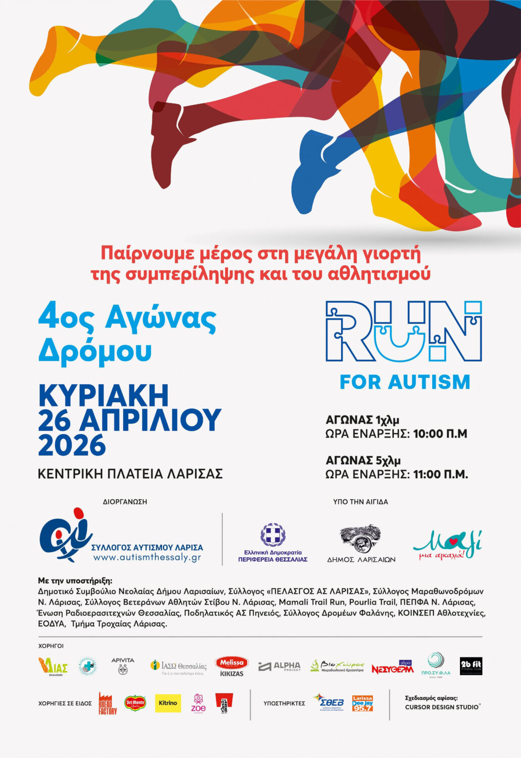 Ο 4ος Αγώνας Δρόμου Run for Autism έρχεται την Κυριακή 26 Απριλίου να ενώσει ανθρώπους όλων των ηλικιών σε έναν αγώνα με βαθύ κοινωνικό αποτύπωμα, αφιερωμένο στη συμπερίληψη και την αποδοχή των ατόμων με αυτισμό.