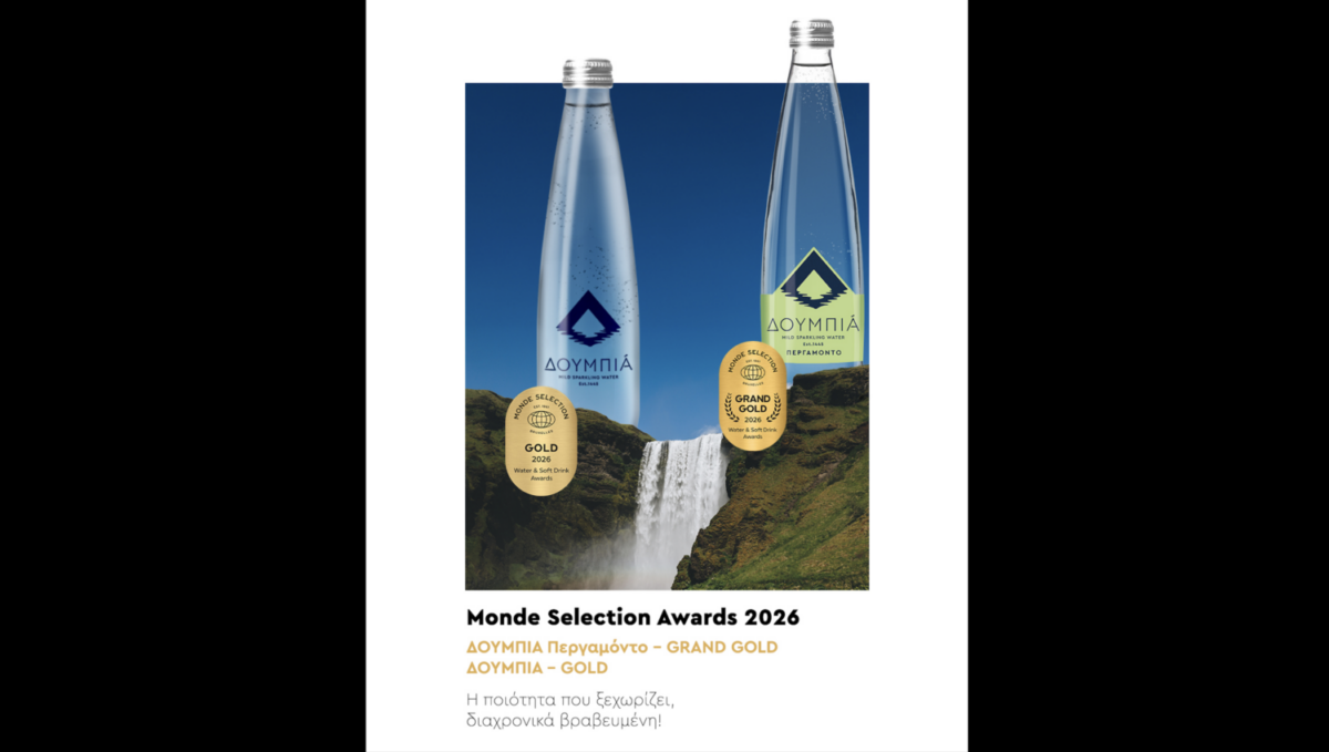 Σημαντικές διακρίσεις σε διεθνές επίπεδο απέσπασε το ανθρακούχο φυσικό μεταλλικό νερό ΔΟΥΜΠΙΑ στον καταξιωμένο διεθνή διαγωνισμό Monde Selection 2026, επιβεβαιώνοντας την ποιότητα και την ξεχωριστή ταυτότητα των προϊόντων της.