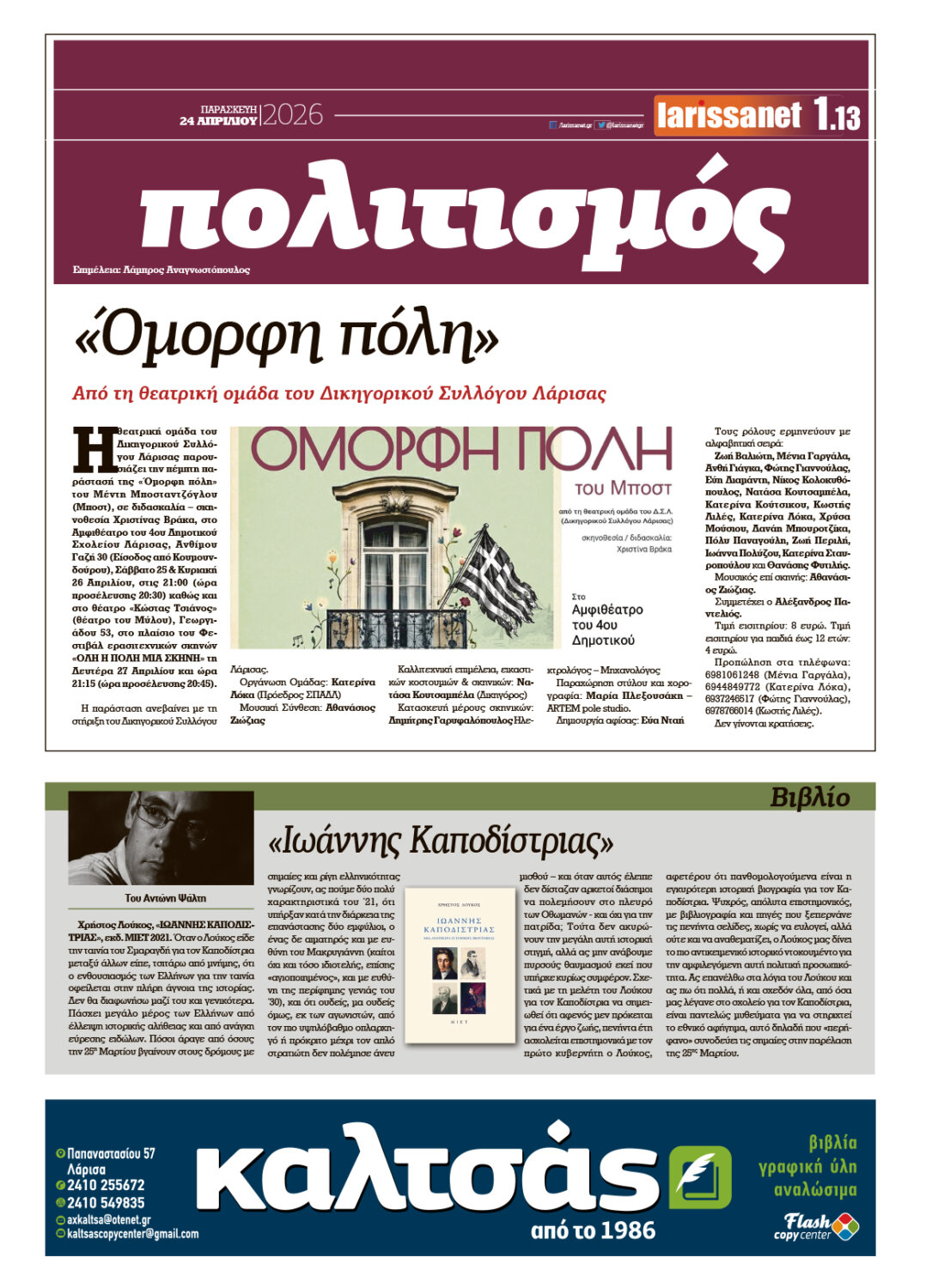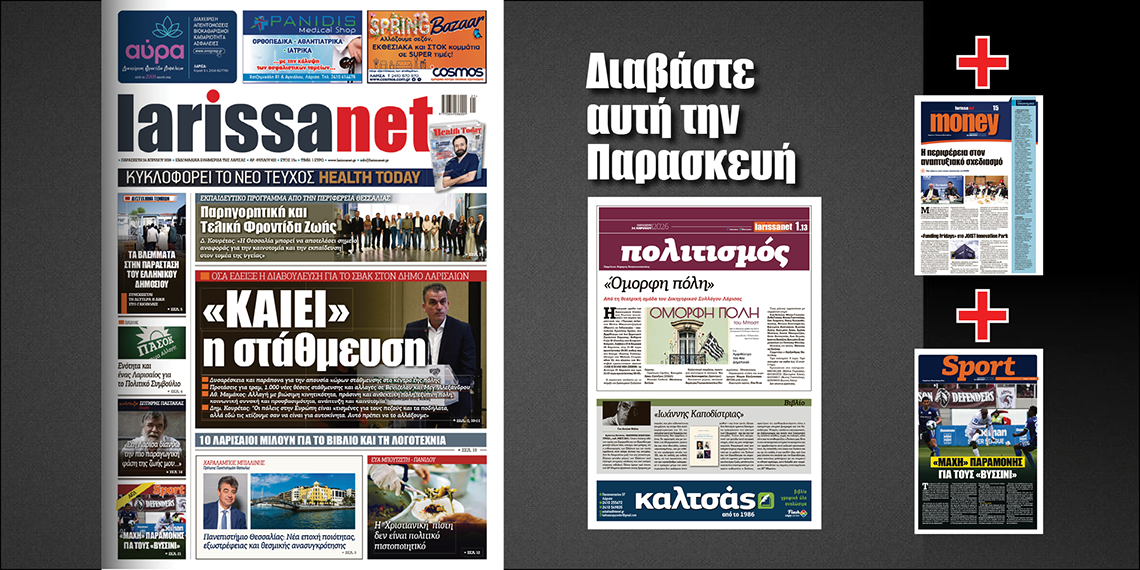 Ρεπορτάζ, άρθρα, συνεντεύξεις και όλο το παρασκήνιο της εβδομάδας στο νέο φύλλο της larissanet.