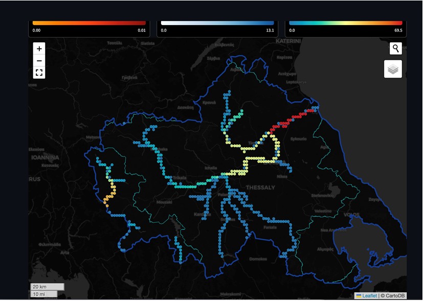 α) αξιοποιώντας σύγχρονες τεχνικές τεχνητής νοημοσύνης, με μοντέλα τα οποία έχουν εκπαιδευτεί χρησιμοποιώντας ιστορικά δεδομένα βροχής και στάθμης ποταμών, παρέχουμε πλέον εκτίμηση της εξέλιξης της στάθμης των ποταμών της Θεσσαλίας για χρονικό ορίζοντα έως και 12 ωρών, παρέχοντας πολύτιμο χρόνο αντίδρασης για τις αρμόδιες αρχές. Το σύστημα αυτό είναι ήδη επιχειρησιακό.