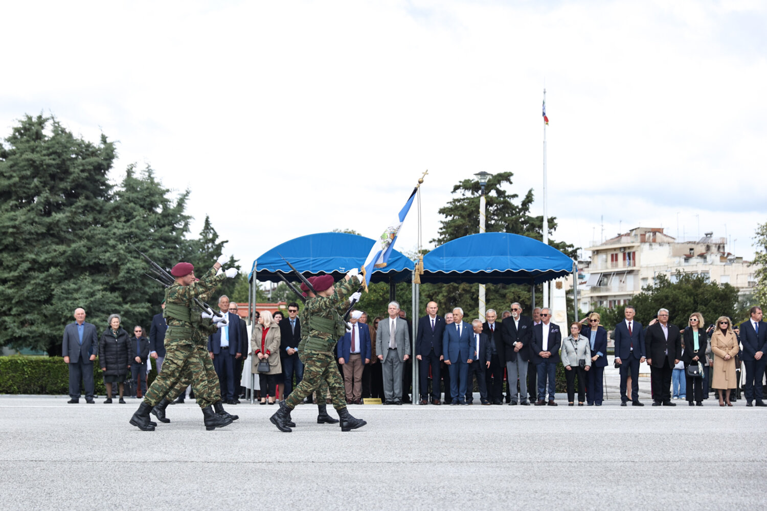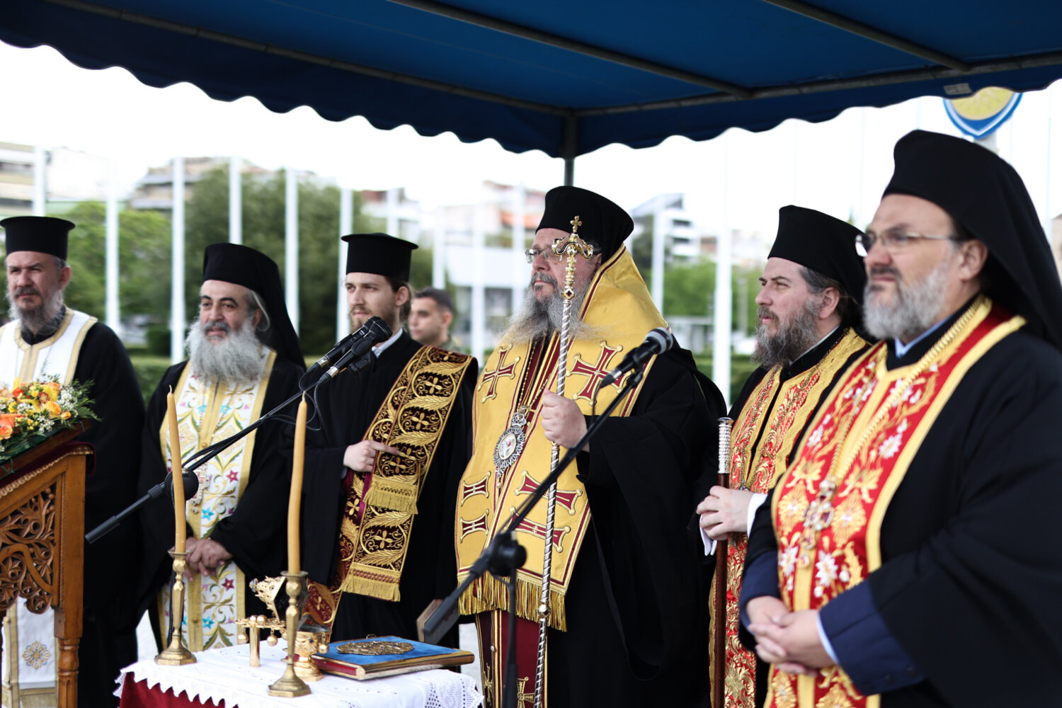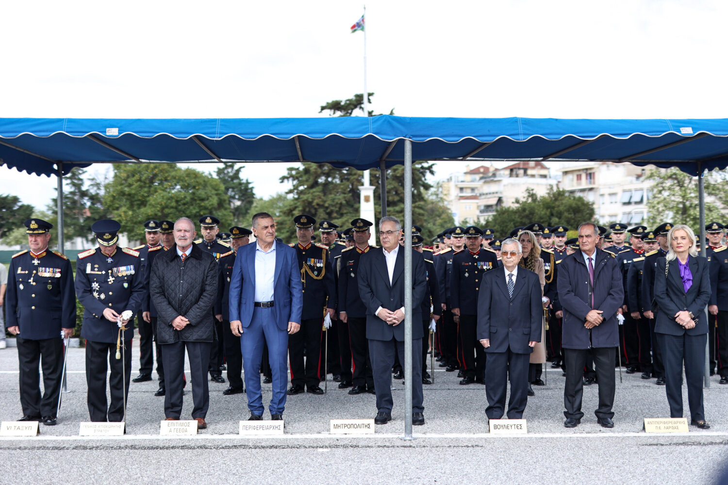 Στην τελετή χοροστάτησε ο Μητροπολίτης Λαρίσης και Τυρνάβου Ιερώνυμος, ενώ οι εκδηλώσεις γίνονται παρουσία Πολιτικών και Στρατιωτικών Αρχών.